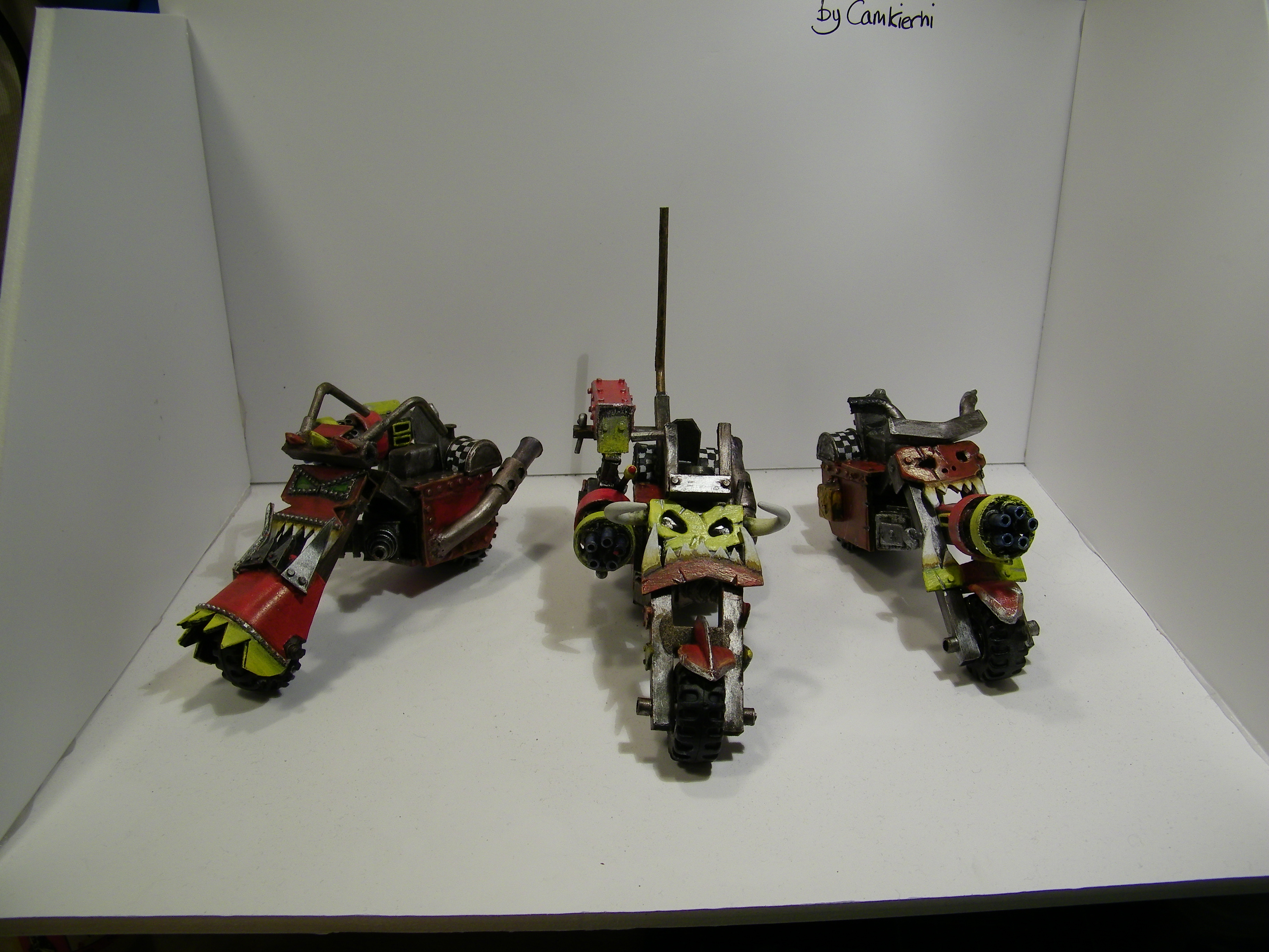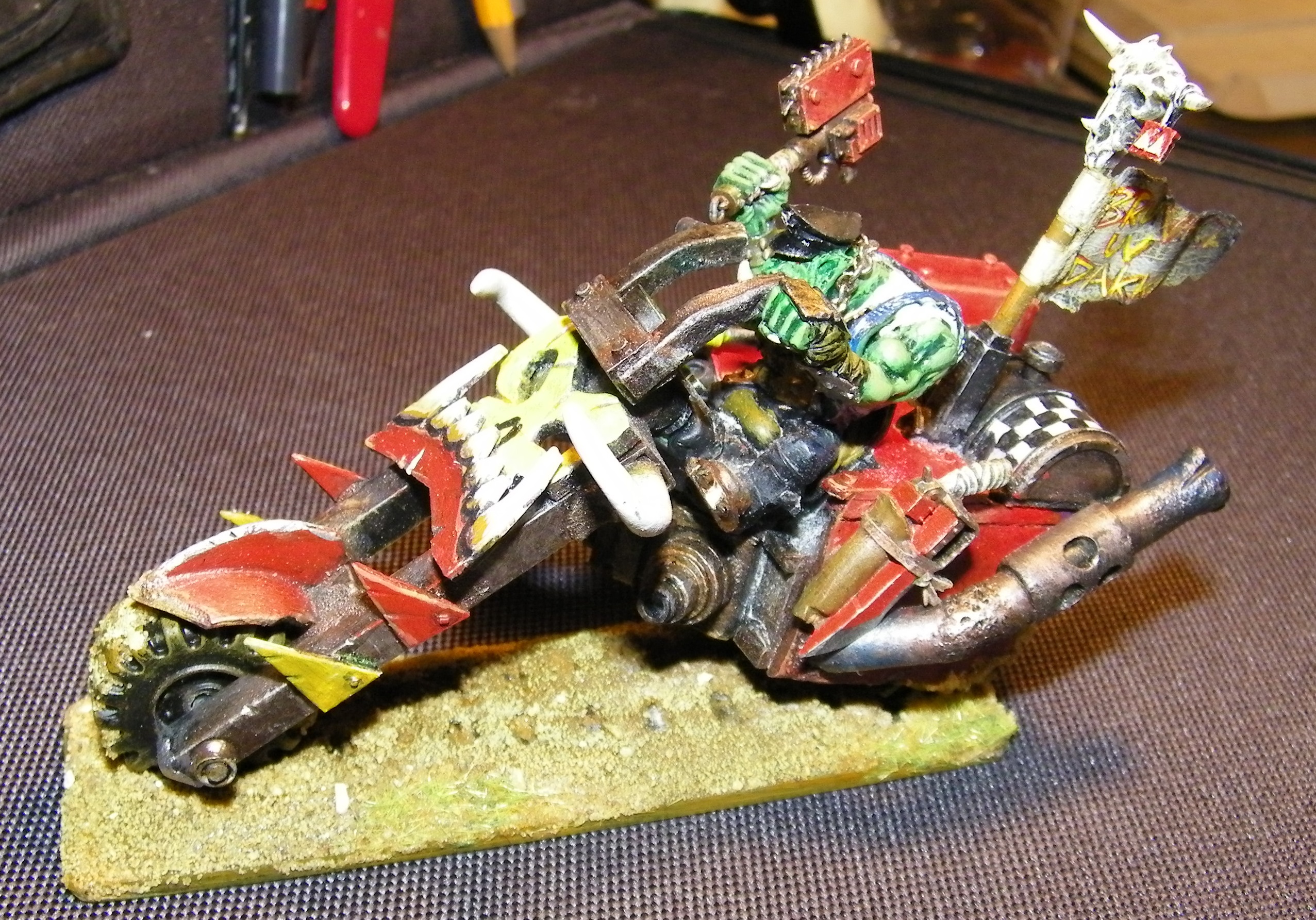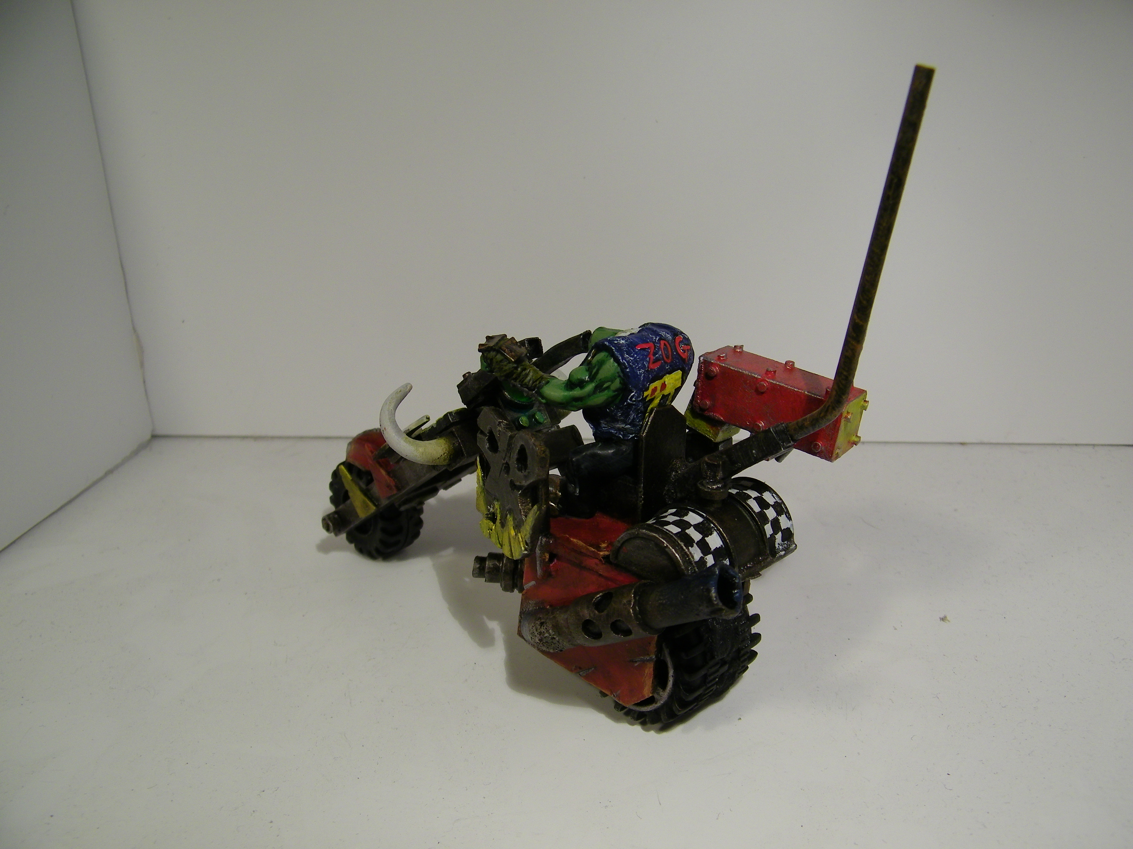 Many years ago I started an Ork army, and have never really given up, this is now many years on and several incarnations later. The one thing you will not find here is anything close to a cohesive army. I believe the "Rules" are wrong on that. In my universe 2 armies are never equal when they meet, in my universe the Ork Horde is made of many different factions all under one WAAAAGH! I am primarily a modeller and have not played in years really, but I do kind of lean toward the various codex archetypes, so you will find bands of boys and bike squads, and eventually Dakka Jets, but you will also find many things which are very unique, and would struggle to be "counts as". My Orks make things to work, not to conform to some specific size/shape/design/colour. And my Orks can't put a rivet (I really love rivets!) but they can't put Rivets in a straight line if there life depended on it.