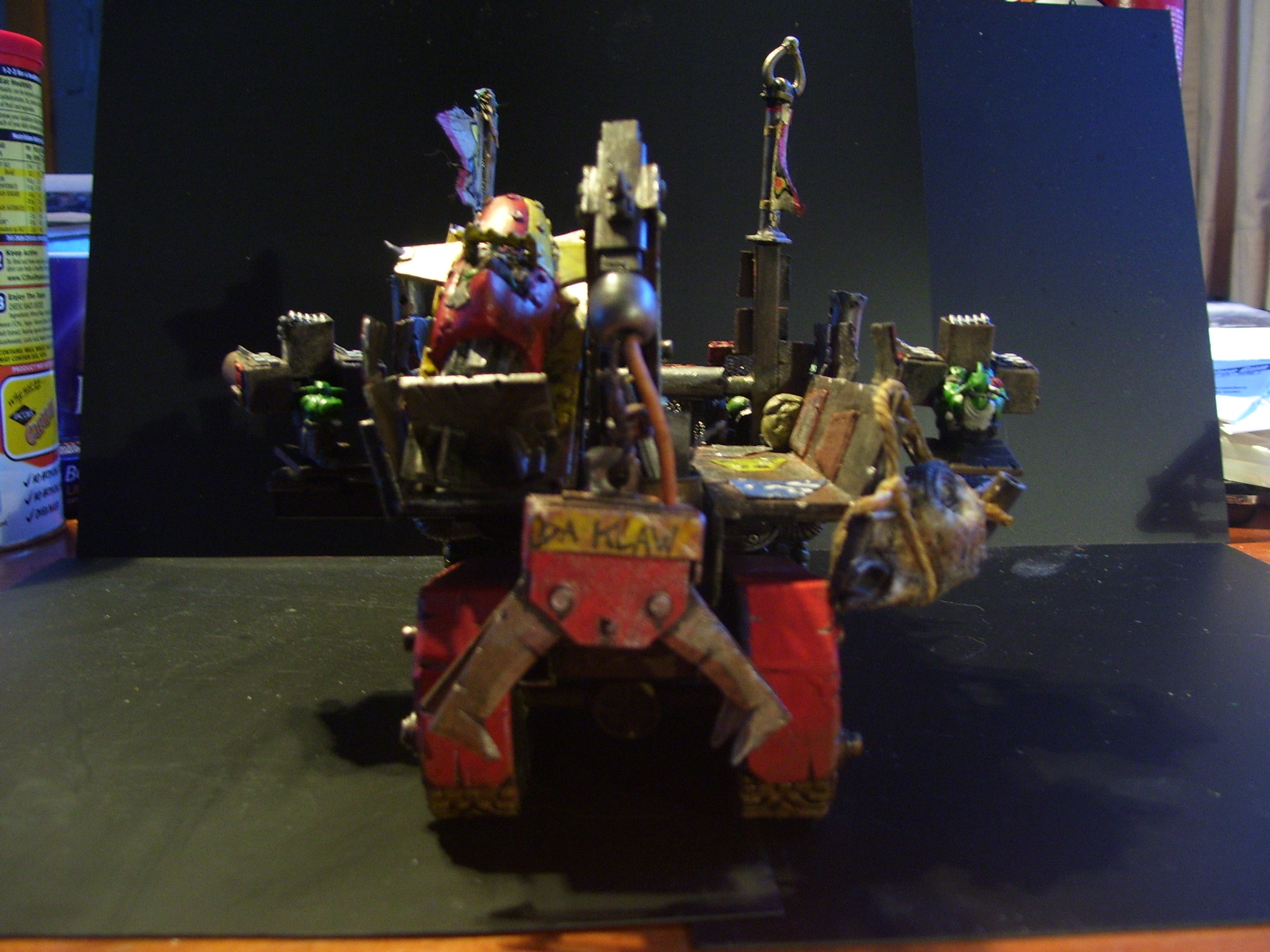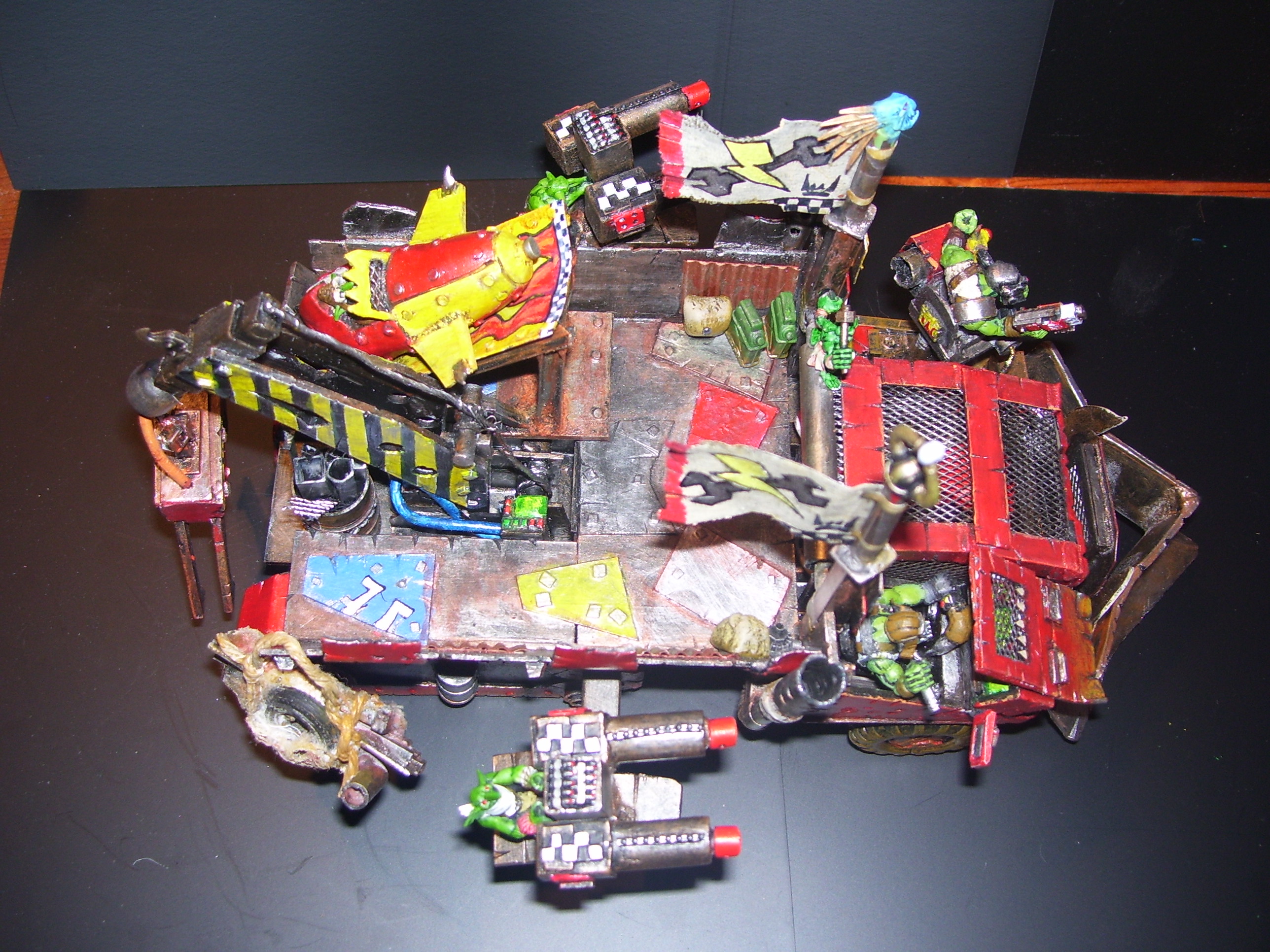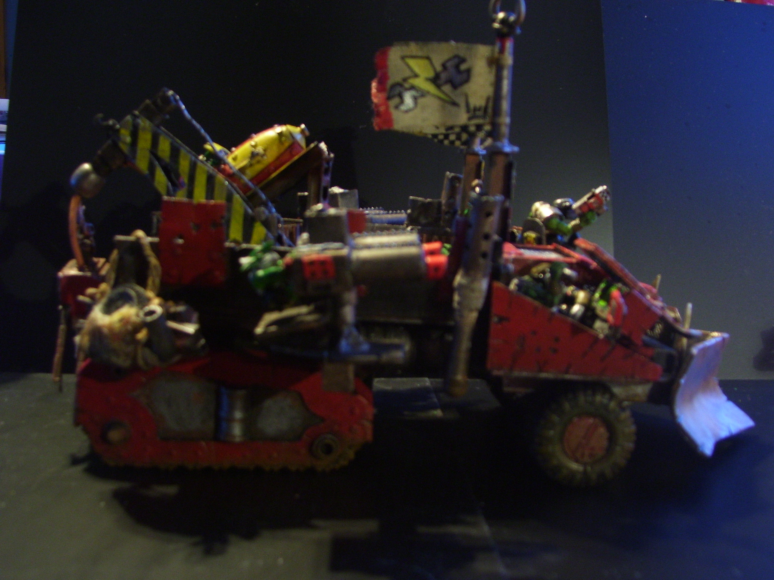 The idea behind it was that it should be able to drag a landraider off the battle field. To be made proper orky like back at the workshop. But should only really be a trukk. That can transport himself and his grots. All whom I plan on actually fitting onto it in battle, as opposed to the usual affair of a rather small trukk saying it can get hundreds of orkses into the back? I have always thought GW trukks very small.