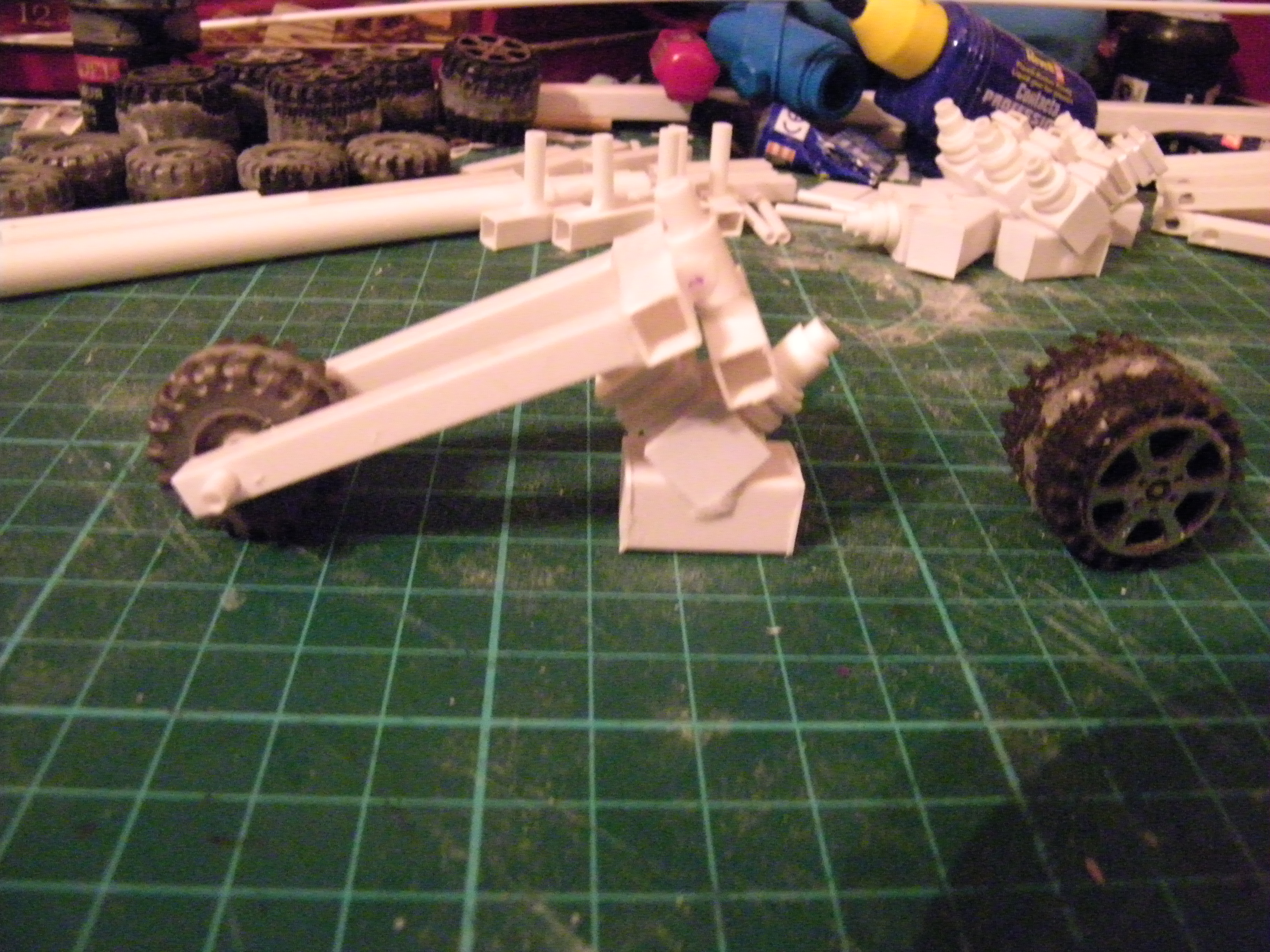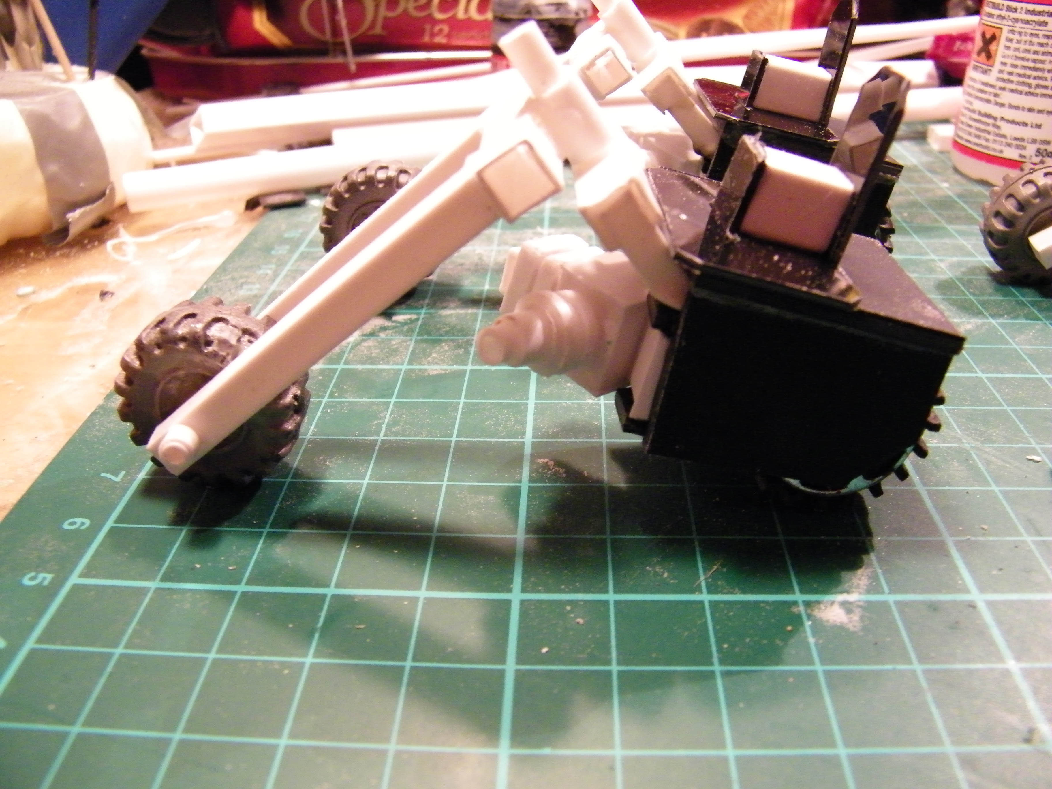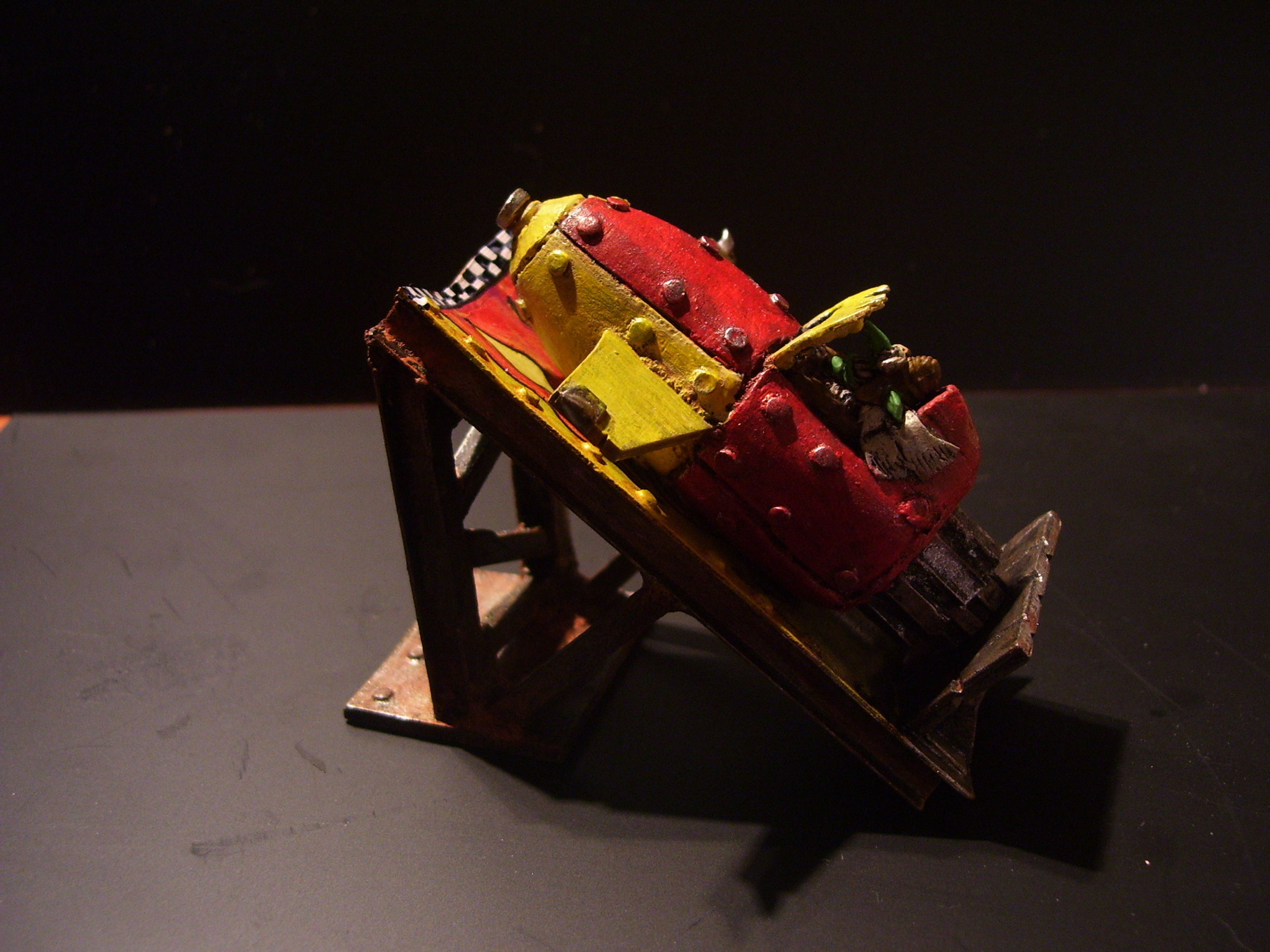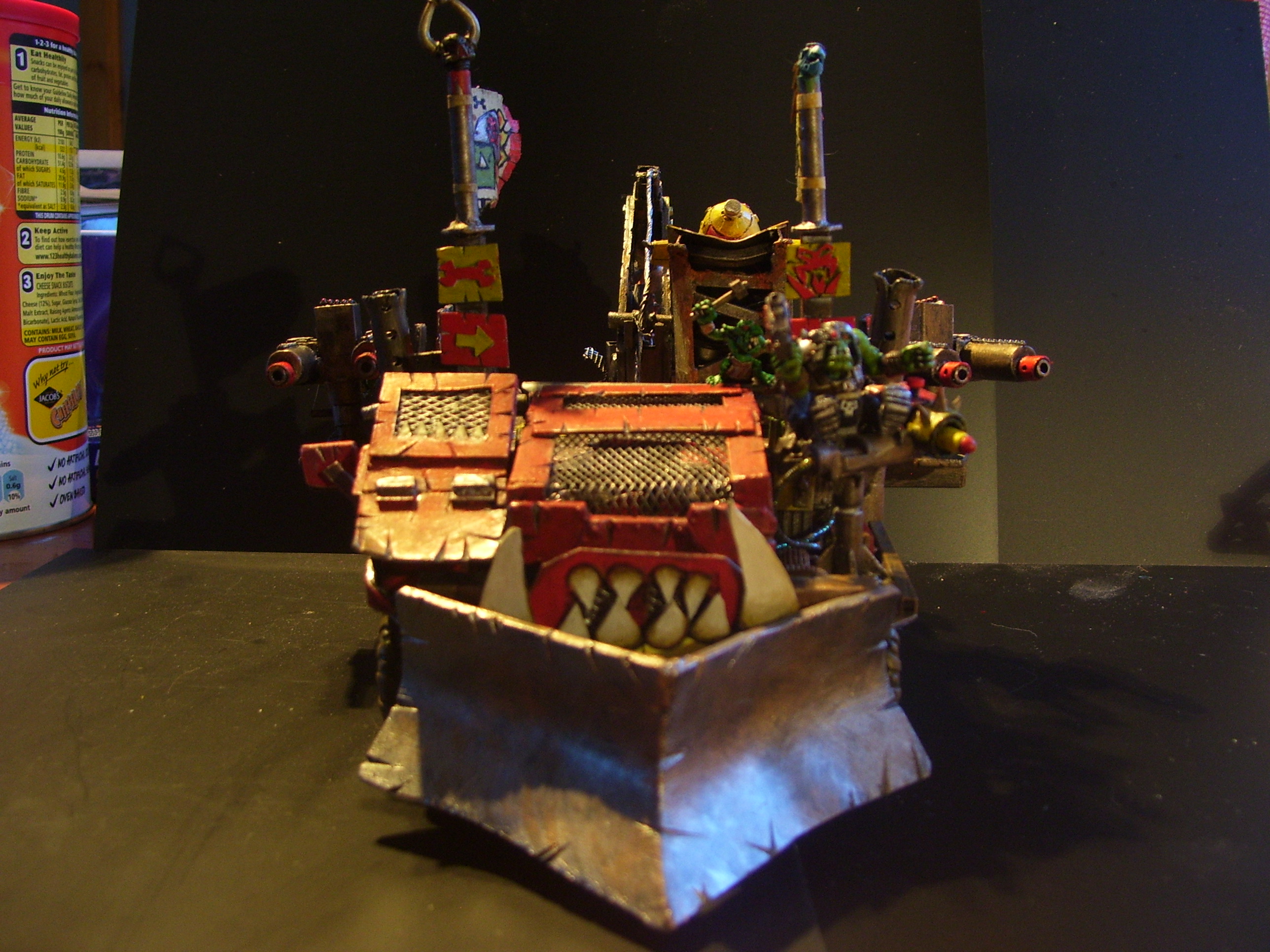 The idea behind it was that it should be able to drag a landraider off the battle field. To be made proper orky like back at the workshop. But should only really be a trukk. That can transport himself and his grots. All whom I plan on actually fitting onto it in battle, as opposed to the usual affair of a rather small trukk saying it can get hundreds of orkses into the back? I have always thought GW trukks very small.