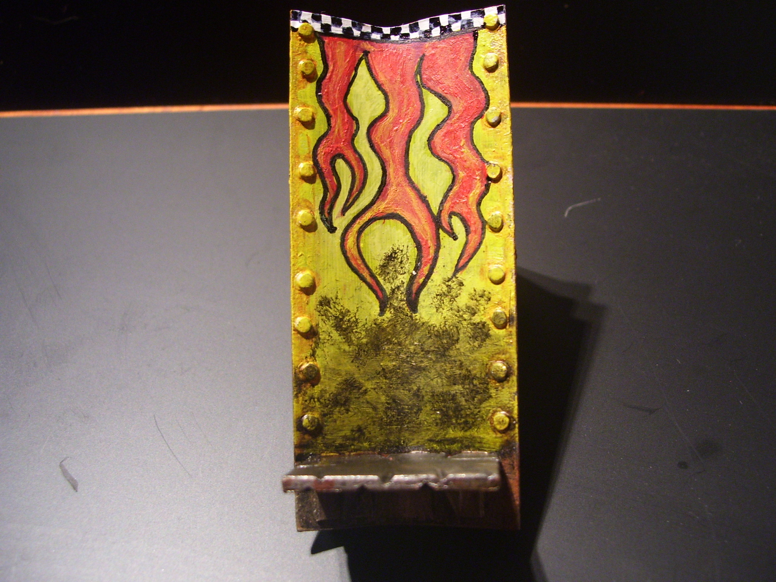 @ Vik. Hoping to make it look like they are glowing red hot. So started with yellow and will ink it redder and redder I hope. May yet just paint them metallic. Will wait and see.