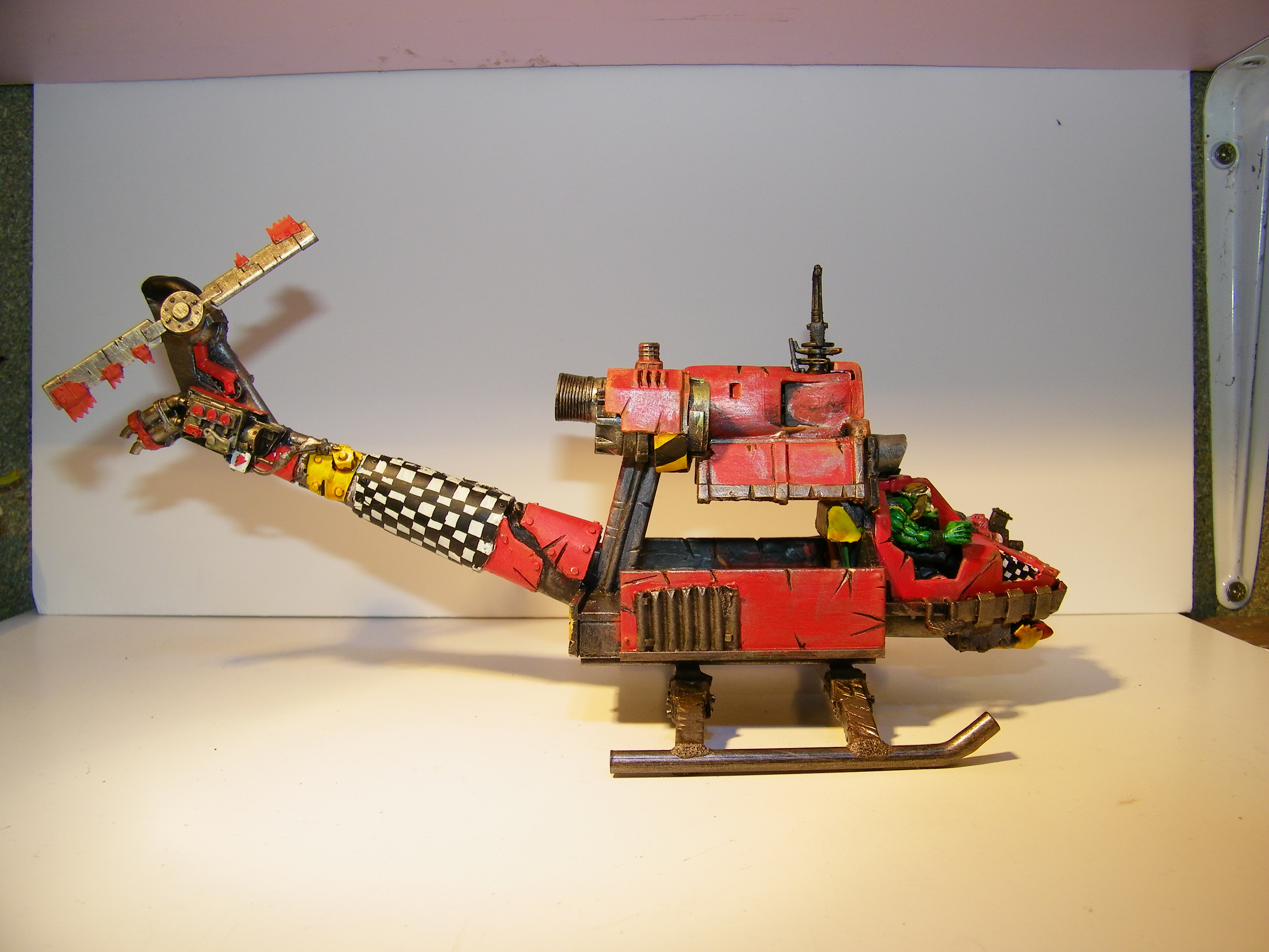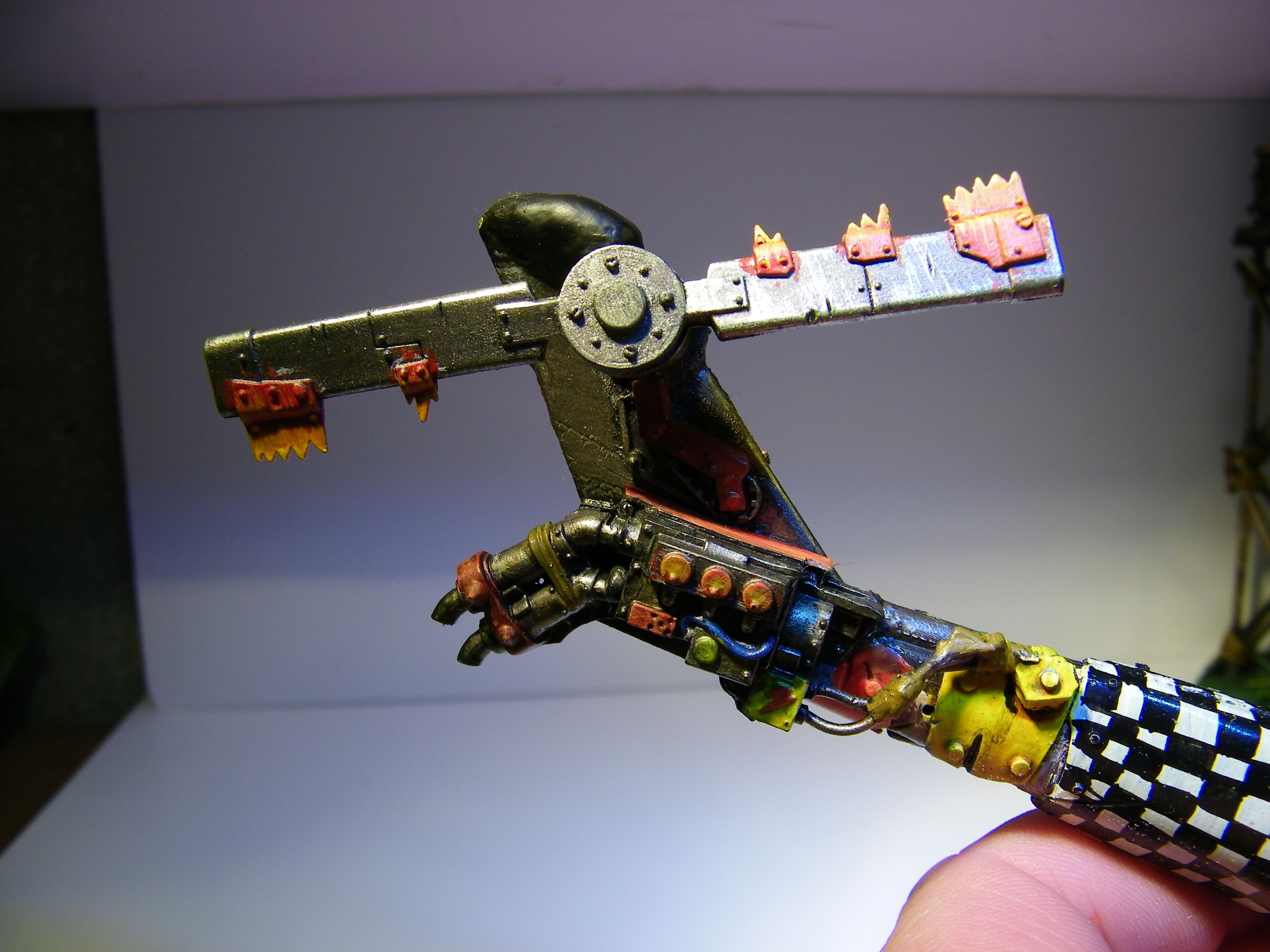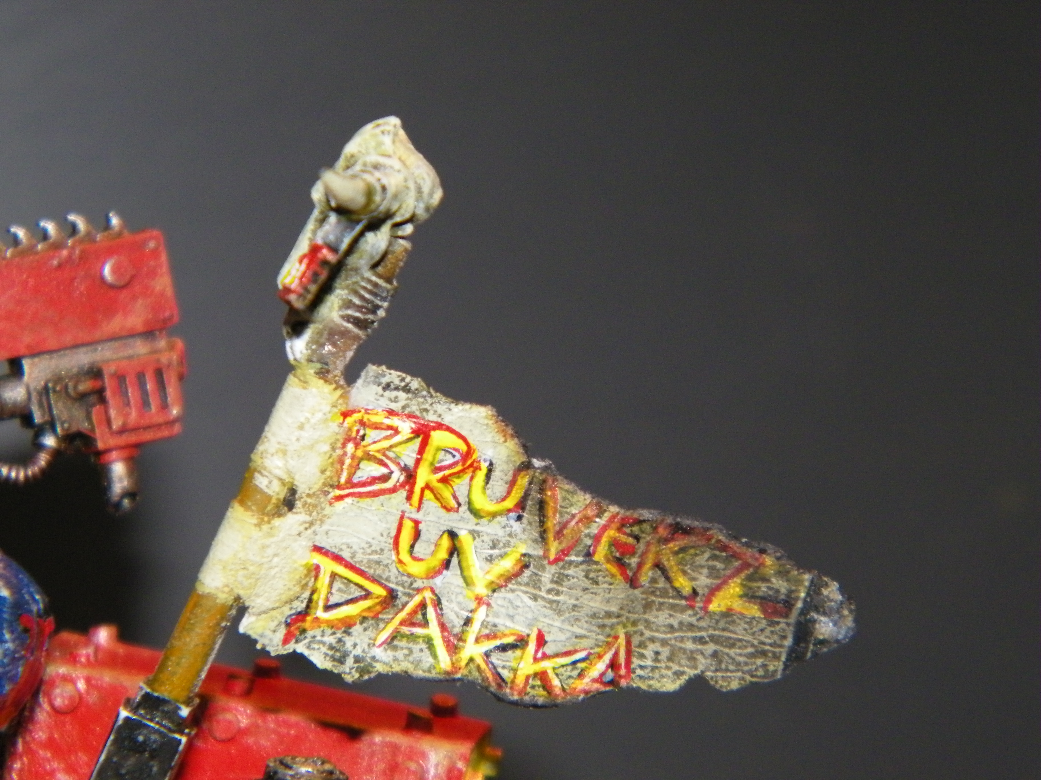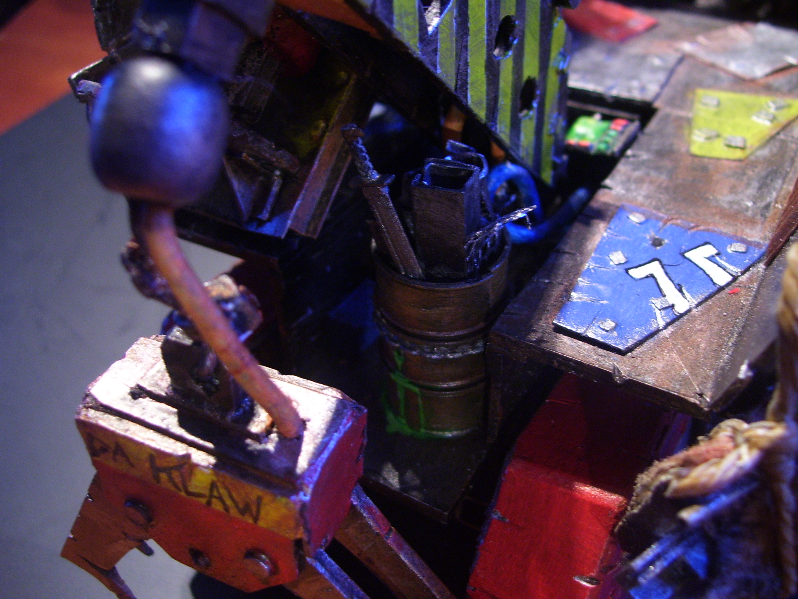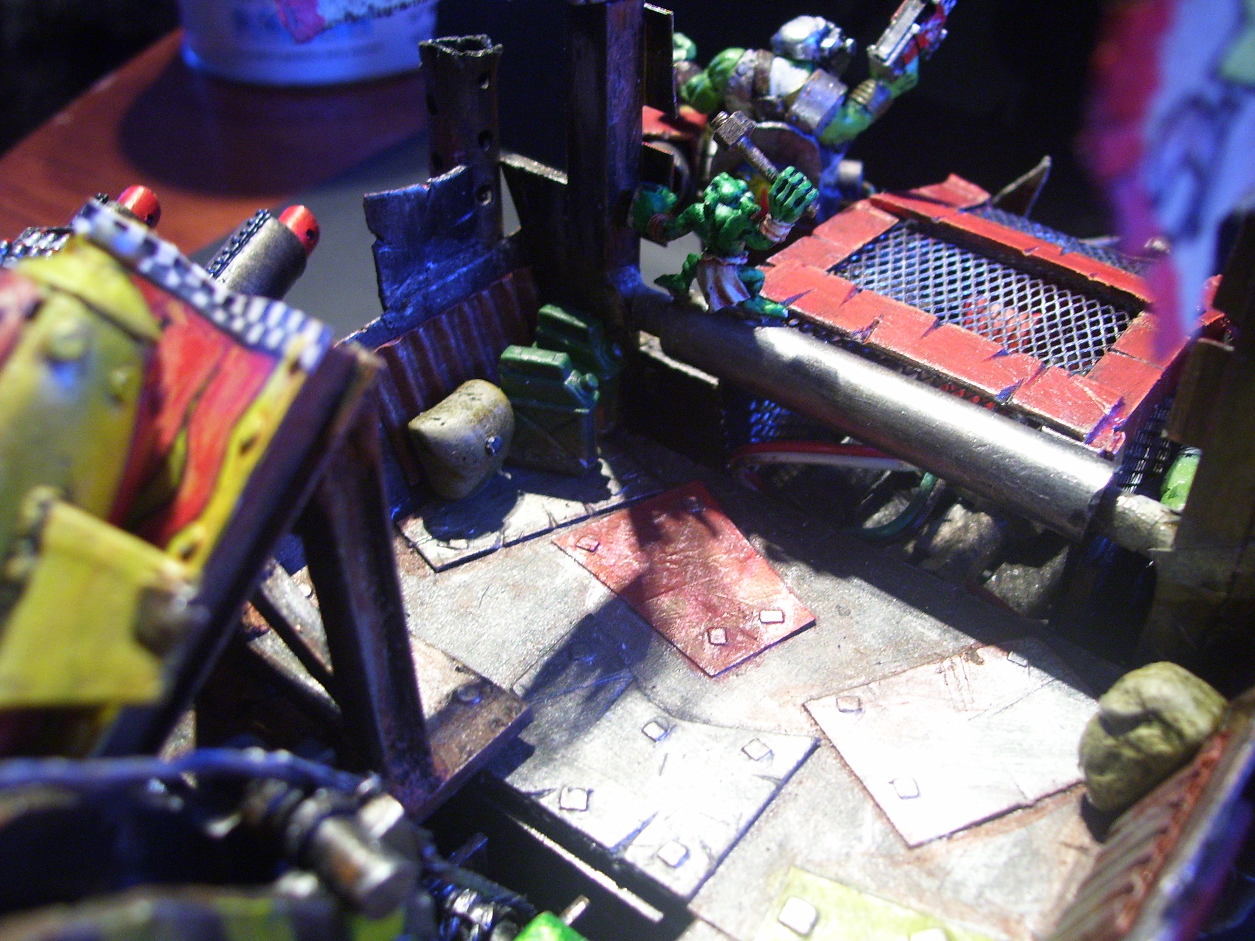 @ cormadepanda. Thank you. yes not sure myself. Going to give it a rest I think just for a minute, look back at it in a bit, with fresh eyes. Got so many ideas for it, cant fit them all in. Actually found some grots I purchased as crew for this a while back in a bits box, too late, crew done. And please come look at my guard, I need all the help there I can get.