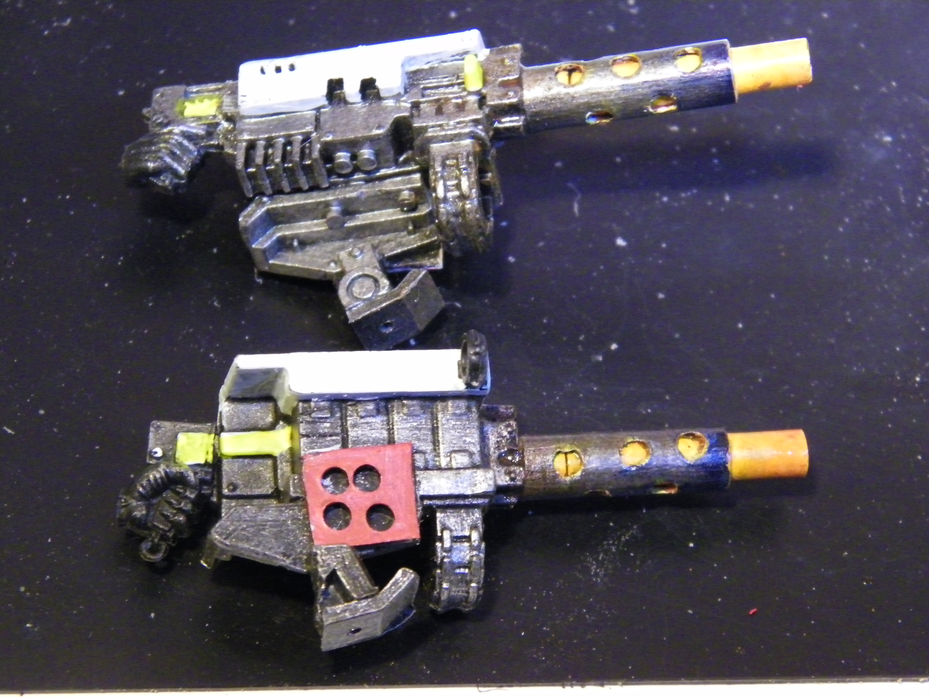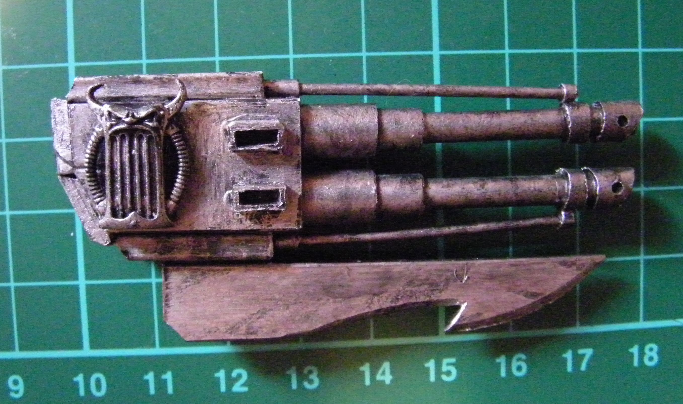 So needed to add the gunners, Still very WIP, but decided I needed nice big guns. Found a couple heavy bolters, I acquired in some batch lot from somewhere. Scrapped some of the paint off.