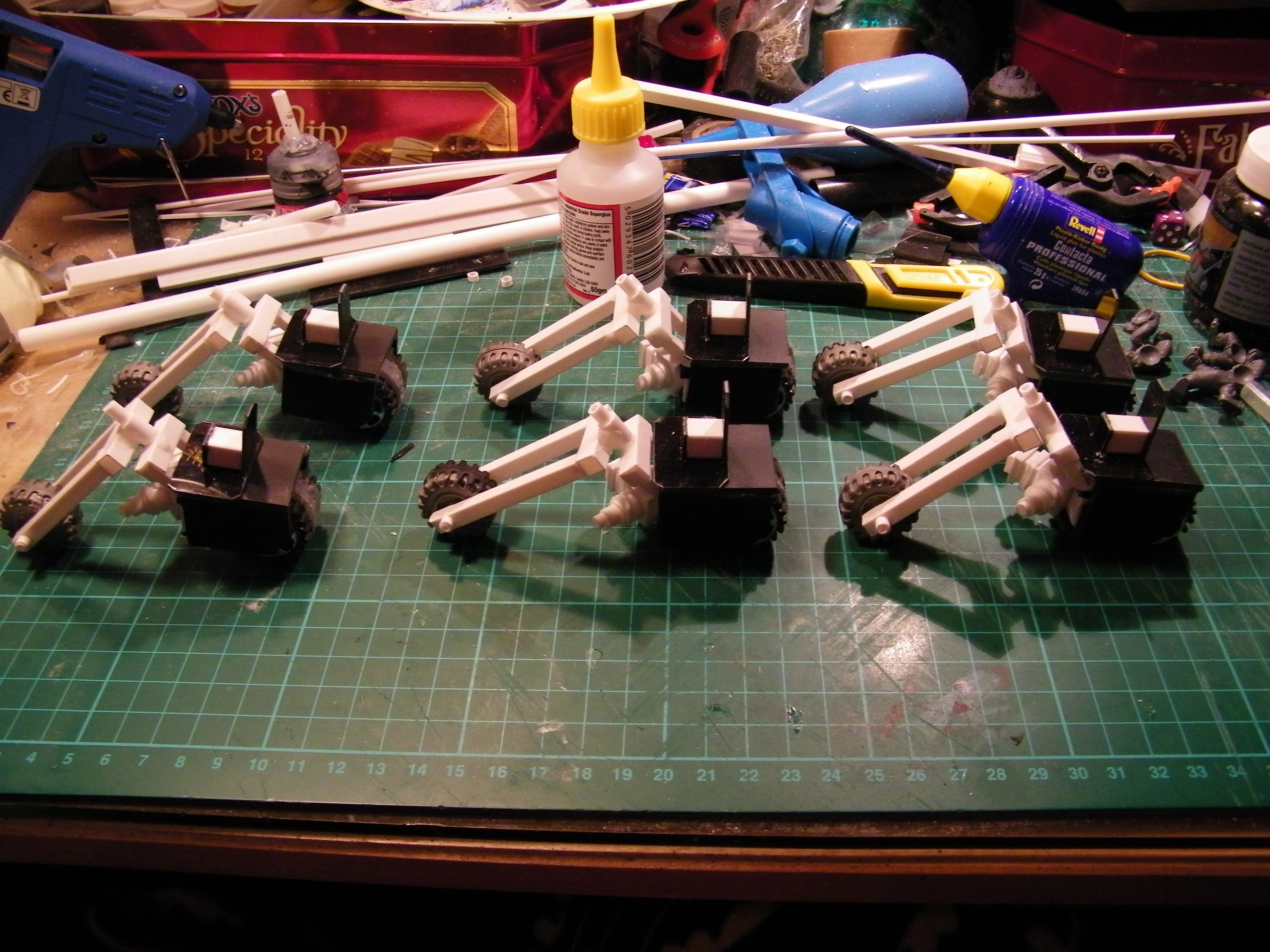 So some motherboard mounting bolts, a few drinking straws, some superglue and a bit of masking tape, followed by liberal coats of paint and this lot appeared.