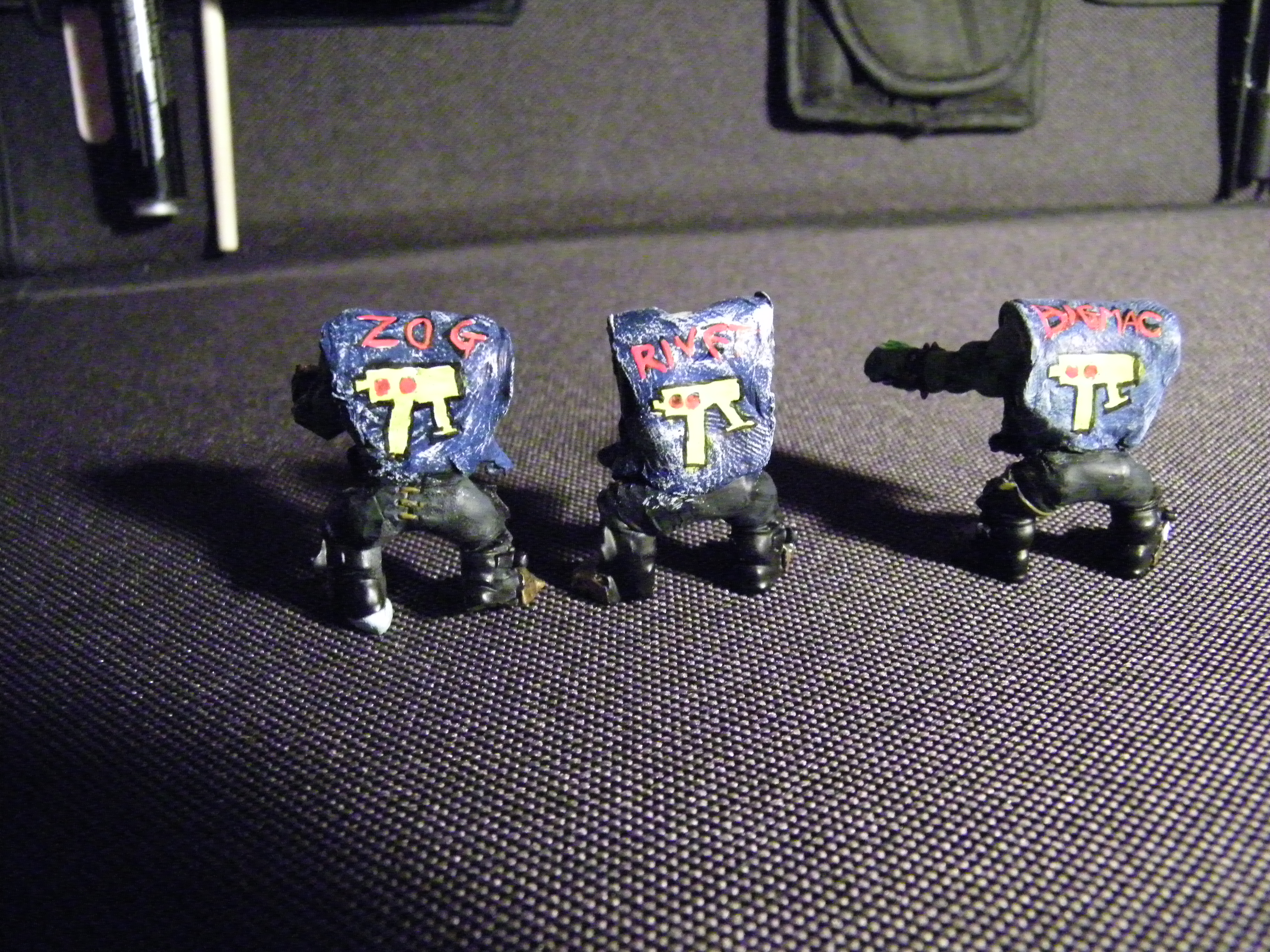 I am trying to make it look like they have denim waistcoats on, biker style. Got to do a bit more to the logo etc. And need to add more details to the bikes. Planning a gun mount on the handlebars for each and a shield mounted to the left of each rider like Zog has. Also tried to paint heat effect on the gun barrels and exhaust, not sure if its working.