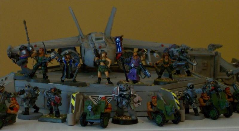 I got a request to post my finished models and here is the first installment of them. All of the vehicles are scratchbuilt and also made from plans. They are made from card stock and laminated. I have build threads here on most of them, and how I constructed them. In this first installment, I have the prototype of my Super Chimera before GW came out withtheir version. The plans for the chimera are in this forum over at my Warhammer armor and things. The motorcycle was scratch built using the GW model as a reference and the Sentinel is from plans found over at zealot.com in the warhammer section under armorman's thread. Enjoy and I will be back with more. attached is a photo of all that I have up till now and I will be adding to it.