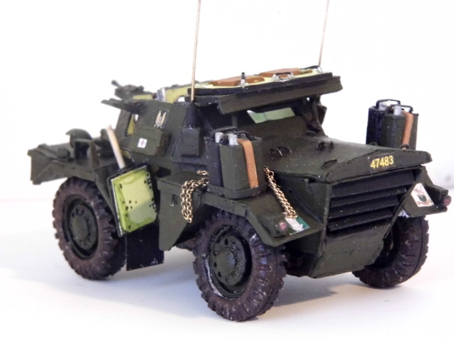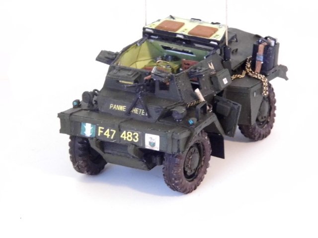 Well here is the finished product of my Daimler Dingo. It was a very widely used scout vehicle used by the British and its commonwealth. This one depicts a vehicle used by the Rhodesian Army Z.Scouts. It has the parent organization badge of the SAS on the sides. It was a very interesting model to build and it also falls in line for use with the Imperial Army or a great loota vehicles for the Greenies. I hope that you all have enjoyed in the building thread and hope to see you all soon with more stuff from my project desk. See you all around the forum.