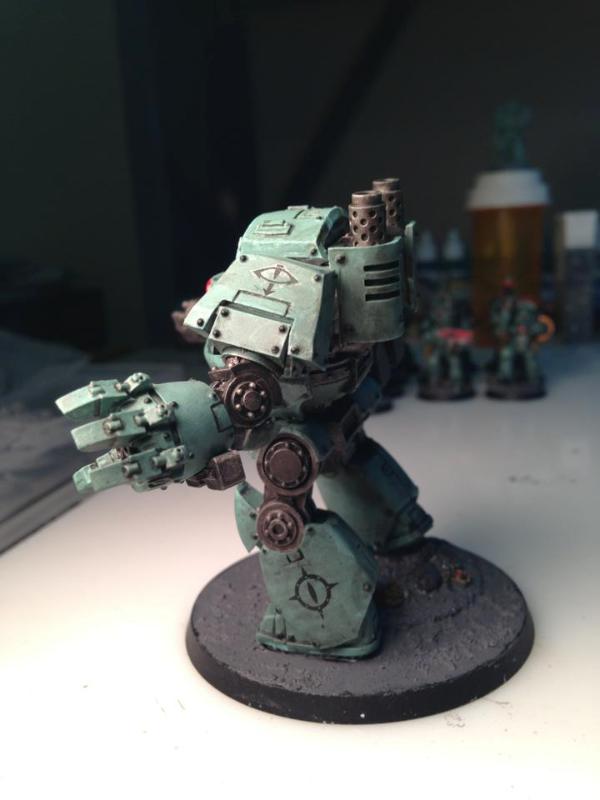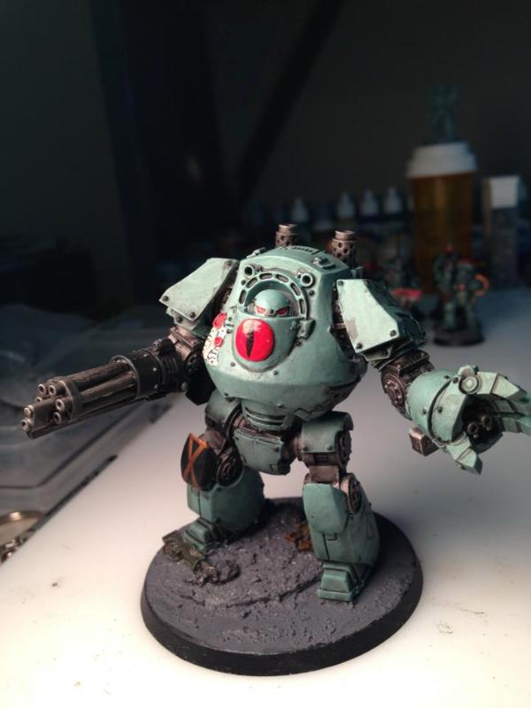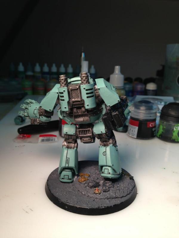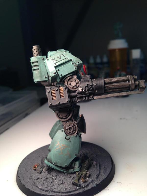 Automatically Appended Next Post: Took a break from Justaerin in order to finish my Contemptor, I have Luna Wolves decals, just haven't added them yet, will added them for the round of nice pictures to come at a later date. I filed down the Aquila on his chest and replaced it with an "Eye of Horus", and added the XVI on the lower left side of his chest, I liked it a lot on the Forgeworld DG Dread so I just made it.