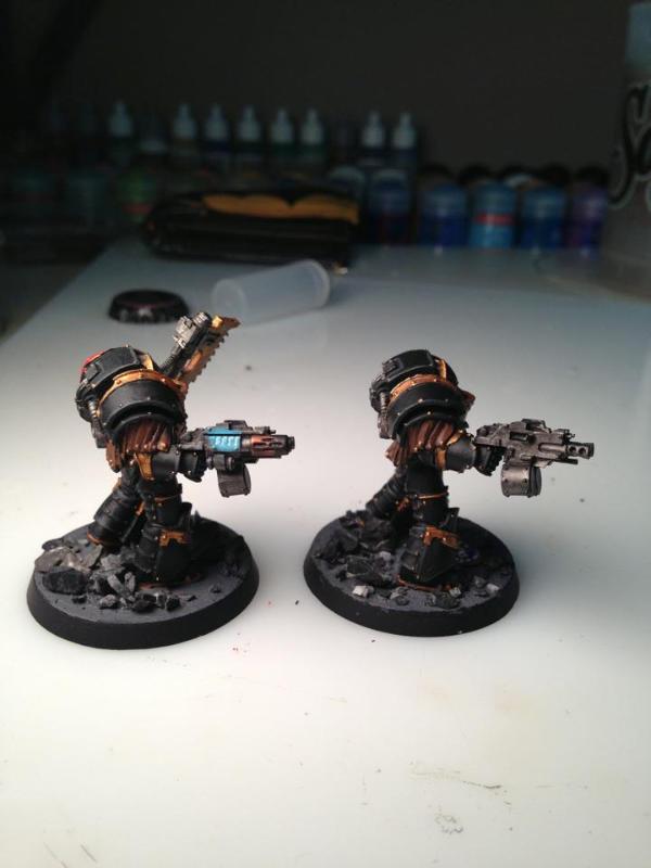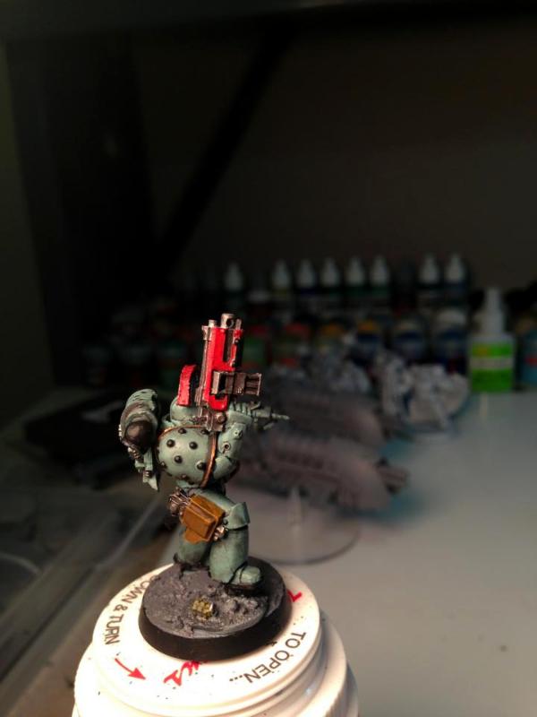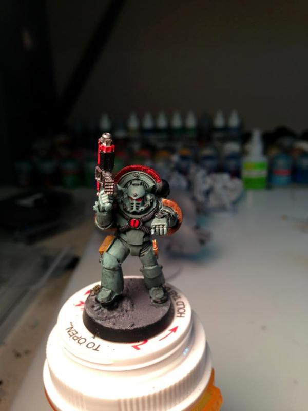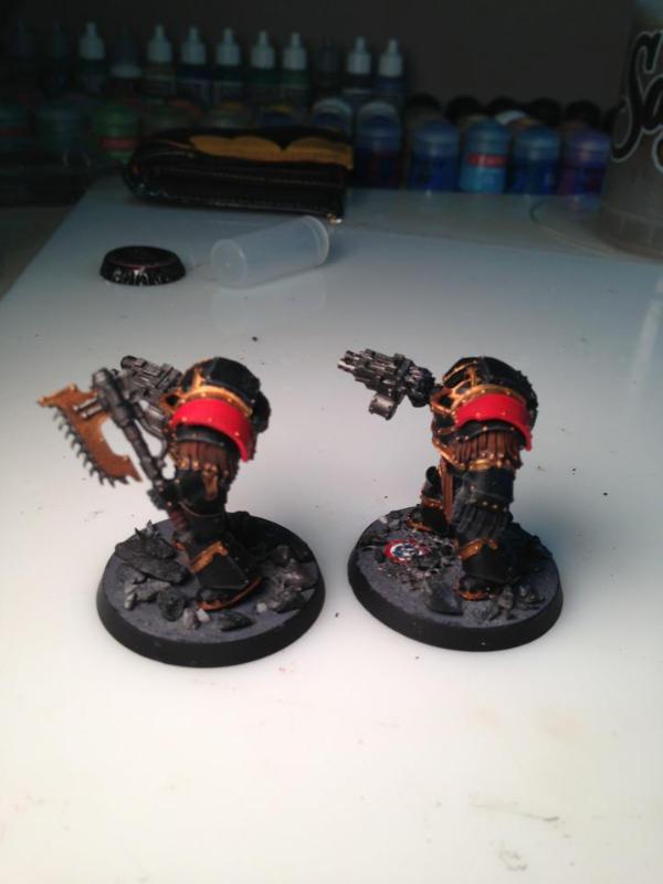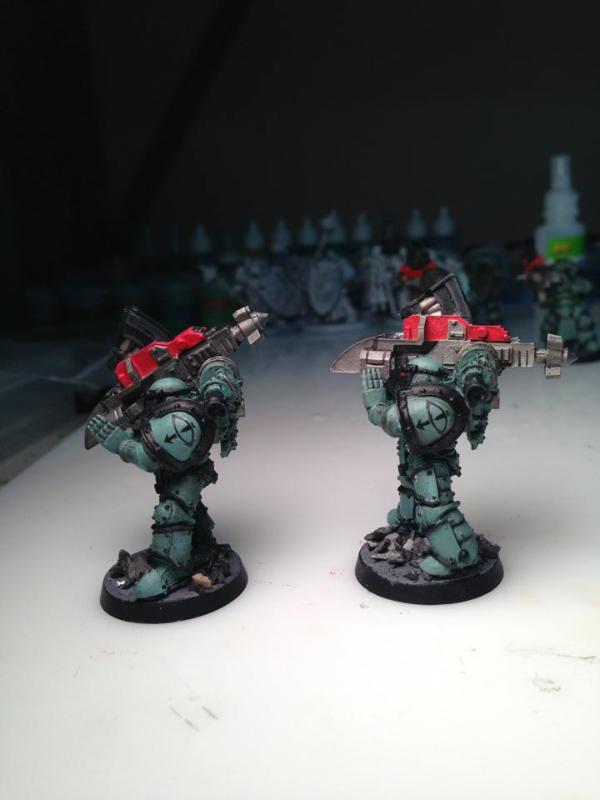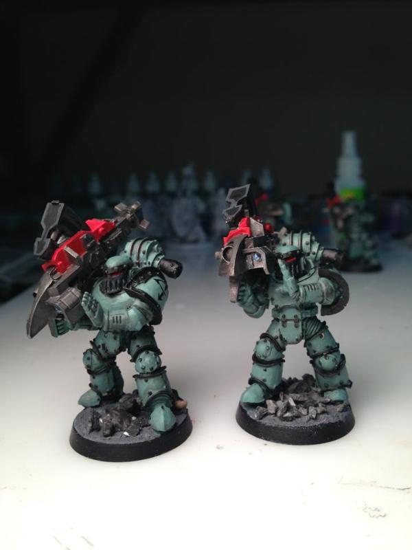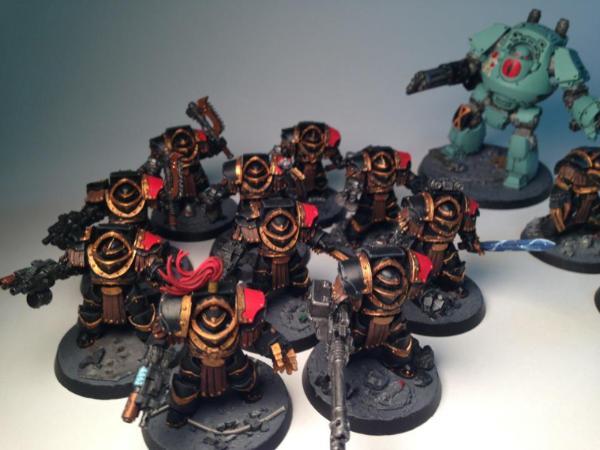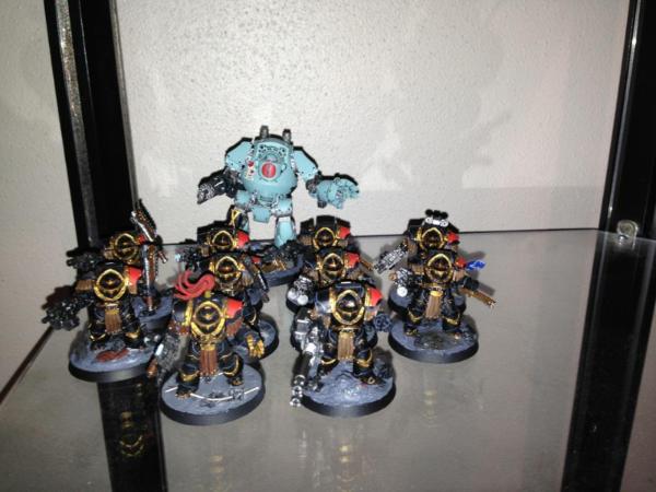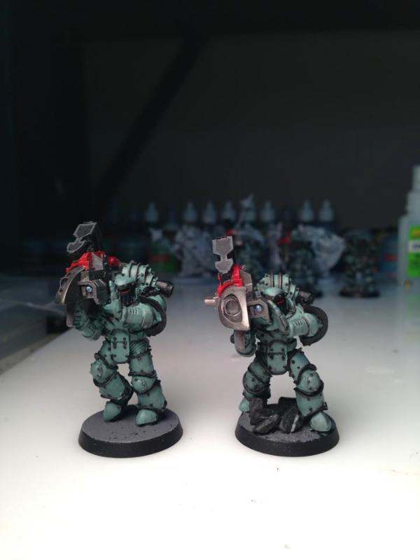Hey Crimson! Thanks, I couldn't remember if they had the red, Falkus is actually listed as Captain of the Justaerin, and Abby is 1st Captain as far as I have seen, there is even a passage about it, they say Torgaddon teased Abby that he let Kibre lead The Justaerin because he ( ab) is too big for a suit of TDA. Yes I do have plans for Kalus' Catulans! As well as Abaddon and Loken when they are released, and of course Horus, this is going to become my main army. Automatically Appended Next Post: Some more for the day. I fixed the Justaerin that I have complete so that they display the red shoulder.