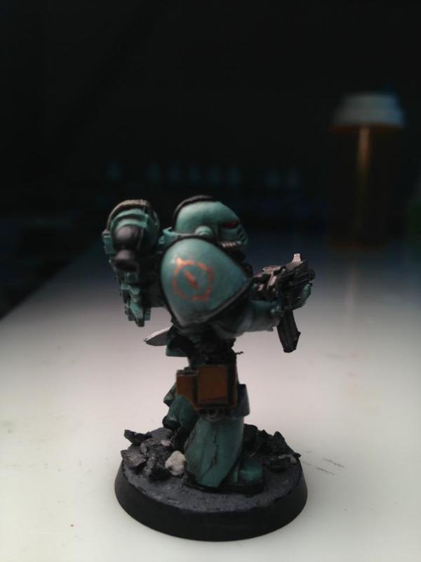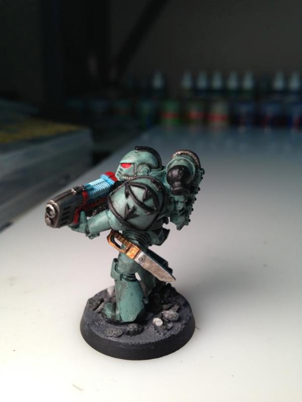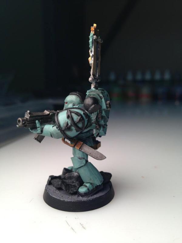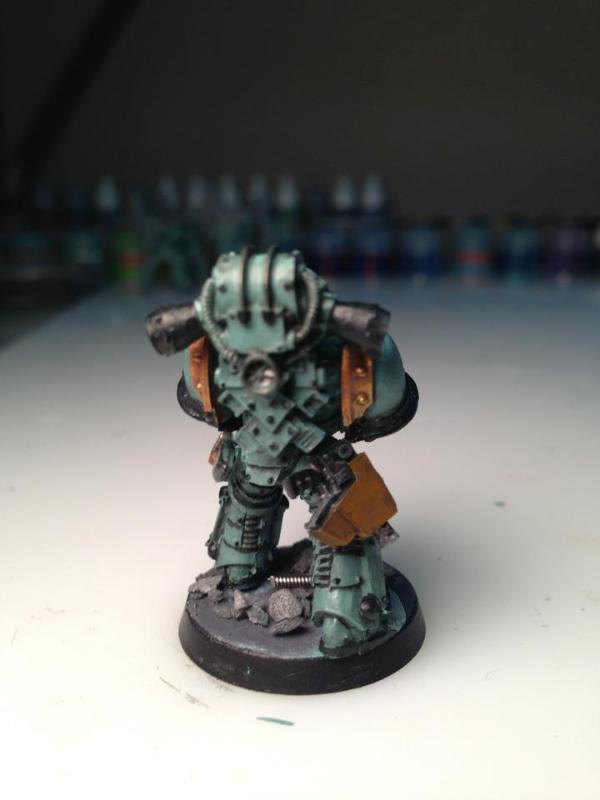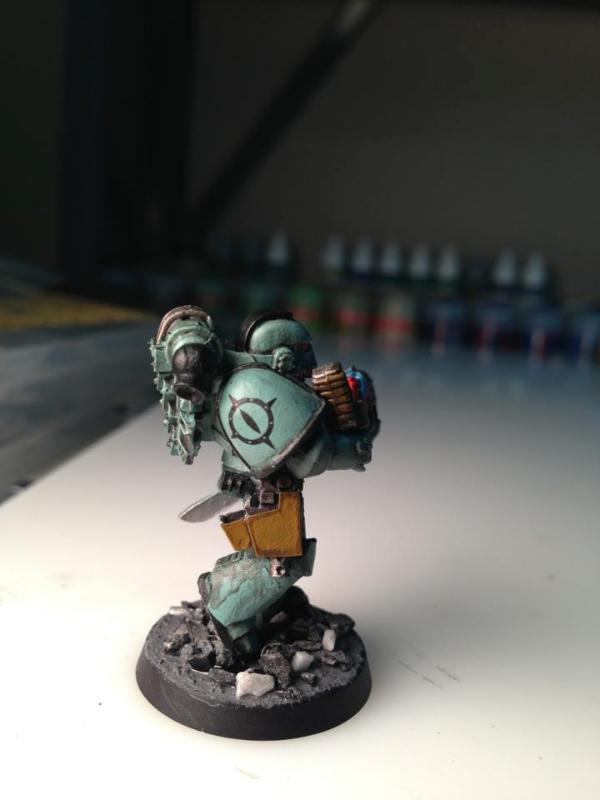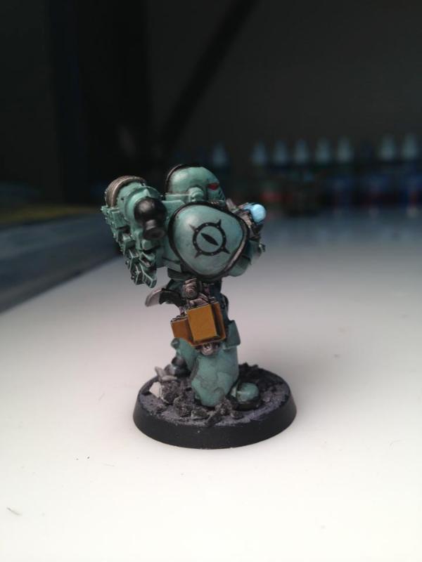 Here is a test piece for my SoH colors, I really like how it turned out, it's not the Forgeworld and not the Index Astartes (which looks like an Andes mint), but I think i'm going to test with a different mix, more towards the sea green.