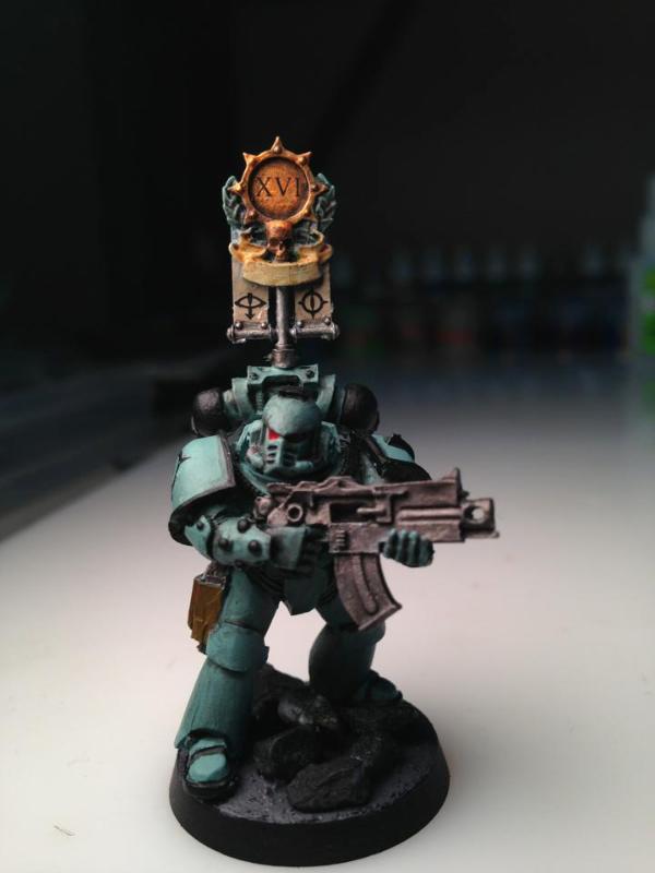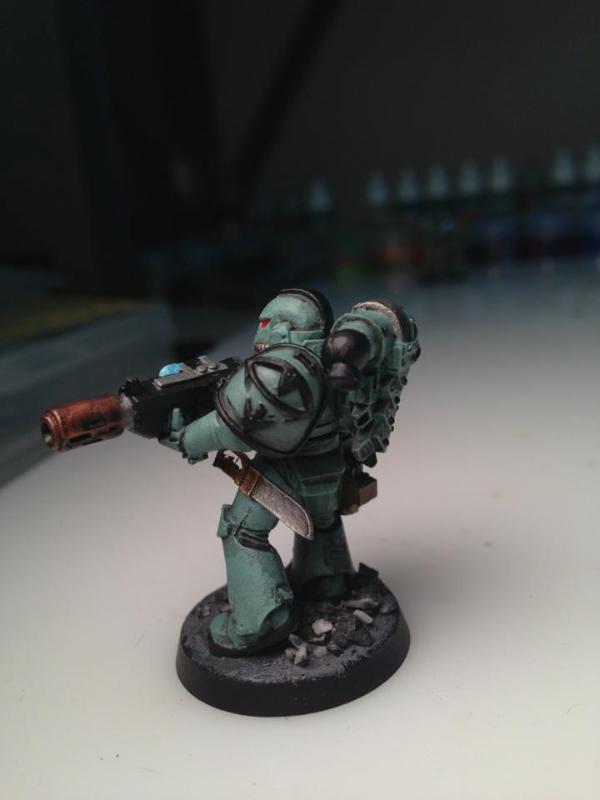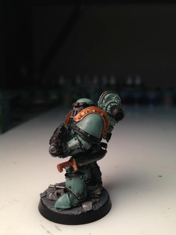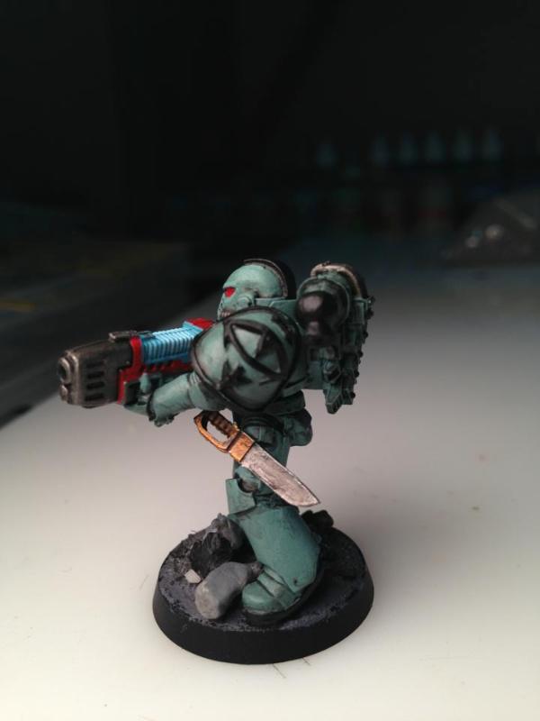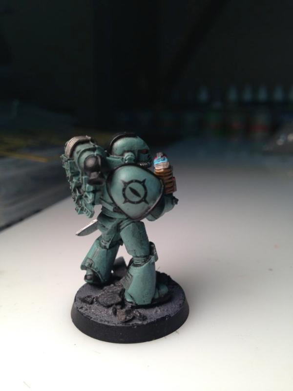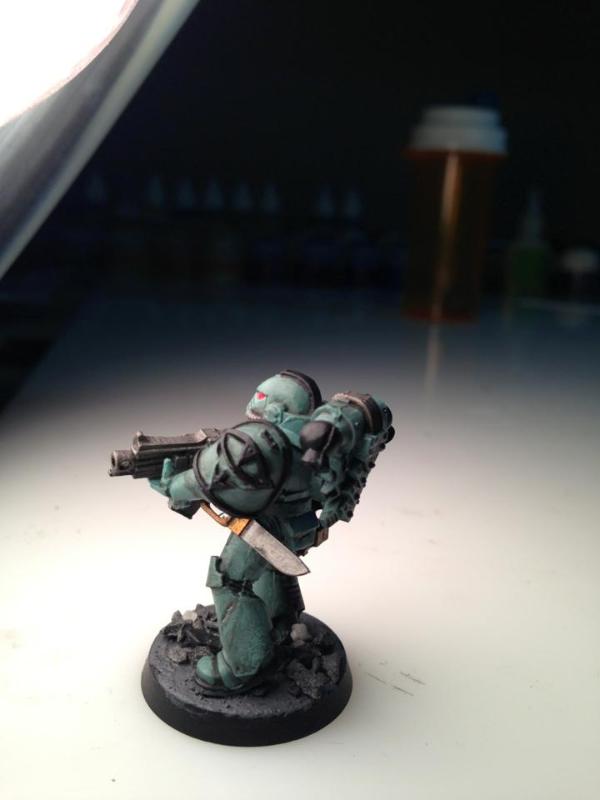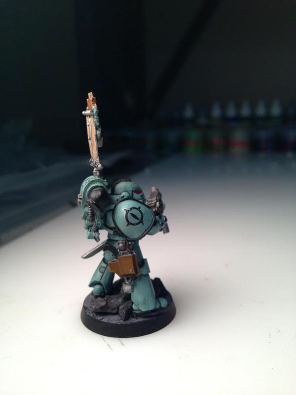Here is a test piece for my SoH colors, I really like how it turned out, it's not the Forgeworld and not the Index Astartes (which looks like an Andes mint), but I think i'm going to test with a different mix, more towards the sea green.