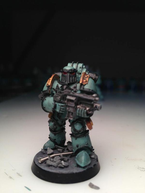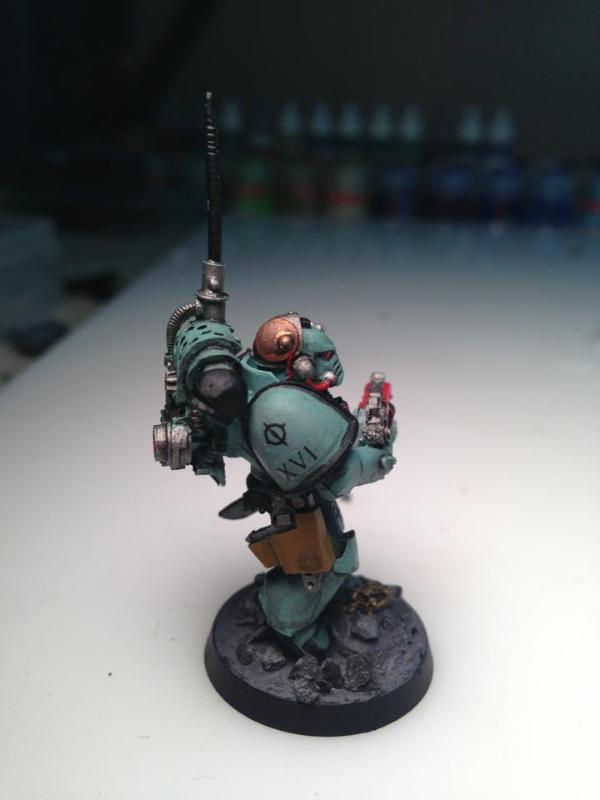 Thanks Senna, the line highlighting was kind of a pain, nothing as bad as my Necrons. but they are supposed to be extreme. I recently acquired an unhelmeted Calas Typhon head from a gamer in the UK who had no use for it on his model. So I used it to make myself a unique Sons of Horus Praetor in TDA.
