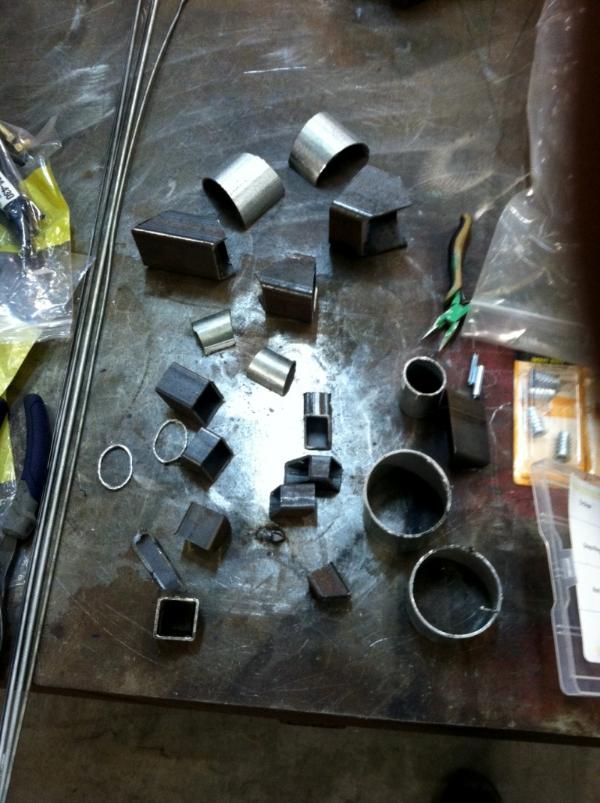 Once I got a pile O' structure pieces, I take em' to the grinder and smooth them out, so that they take to the welding all proppa-like.