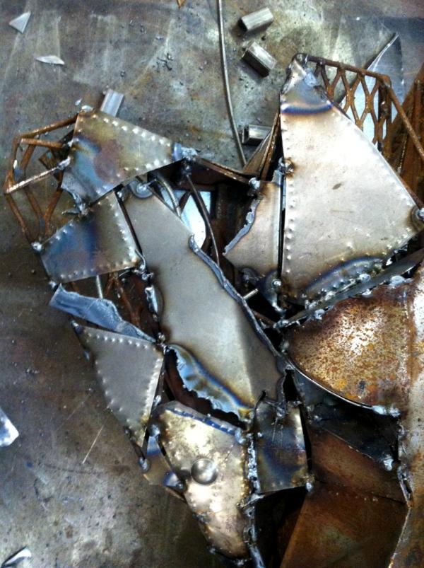 After I got the rough frames cut from the expanded metal, I start sawin' on the gubbins. (I need a lot of metal to jam into the frame. It's a REALLY big frame!)