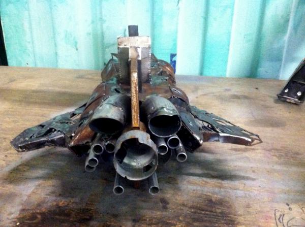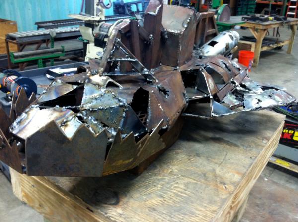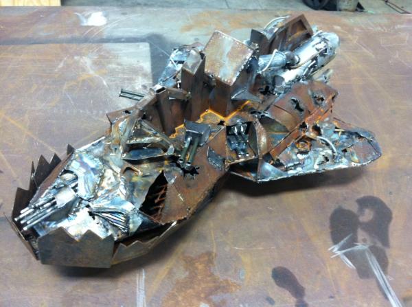 Once I had the main transport bay done, I started on the tail fin. First, I welded the base to the hull, insuring the Landa had a stable base.