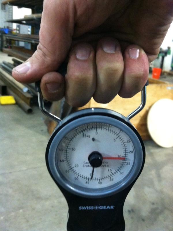 After attaching the handle, I was able to get an accurate final weight! It's 30 pounds, or just shy of 14 Kg.