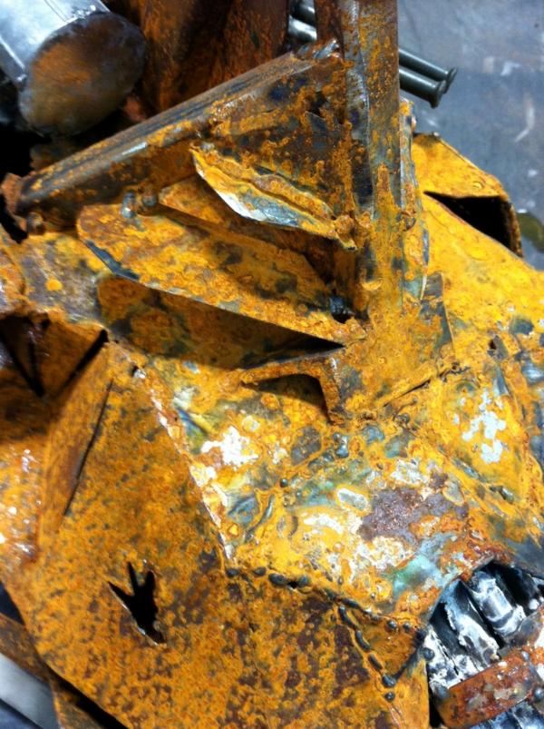 First up, I got thew rust where I wanted it. I used the acid, salt, diesel fuel, fire, and CLR to get the final look.