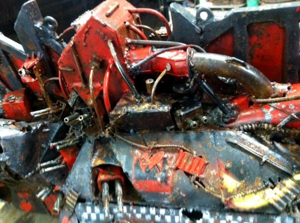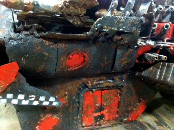 Wow... just wow. That is just ridiculously great! The welded metal really works for the orks. Not sure if you've decided to paint it or not, but as it looks now it might just fit with the rest without much painting. But then again, red ones go fasta!