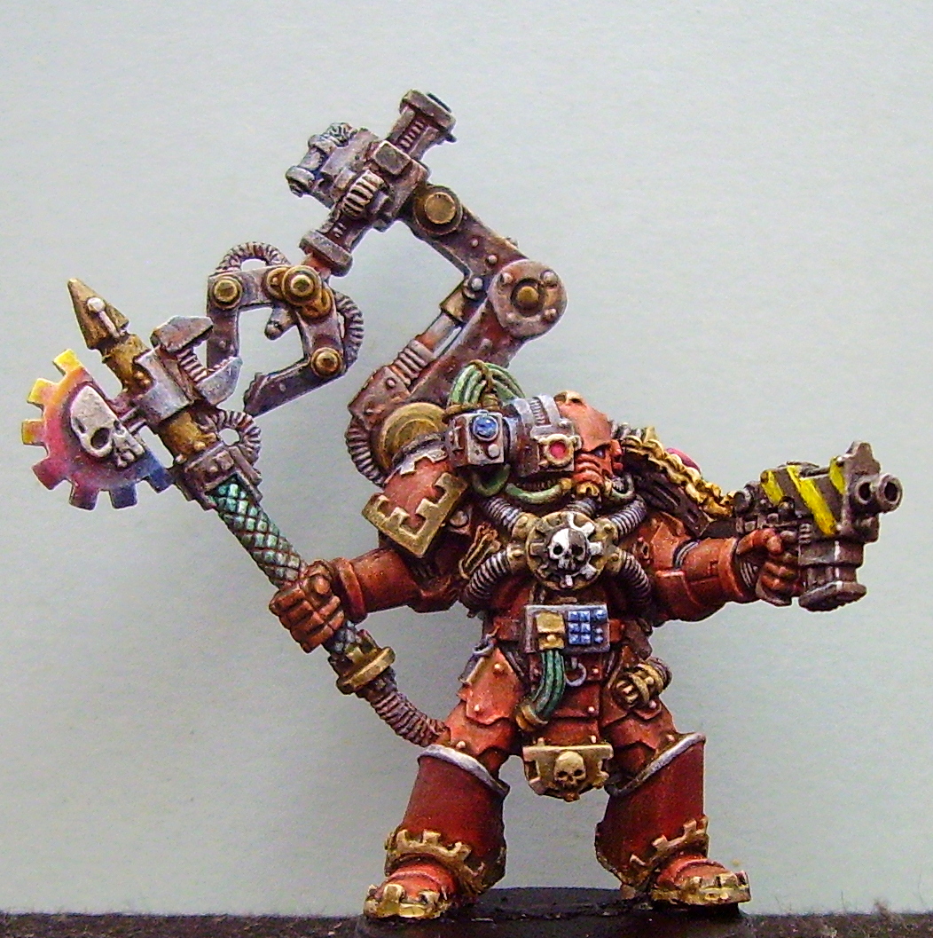 I love the old school techmarine, looks top notch...Not sure if you are aware of this or not, but back in the day the rule for that clawed hand shoulderpad is it was yellow no matter the chapter...It was is badge of office...