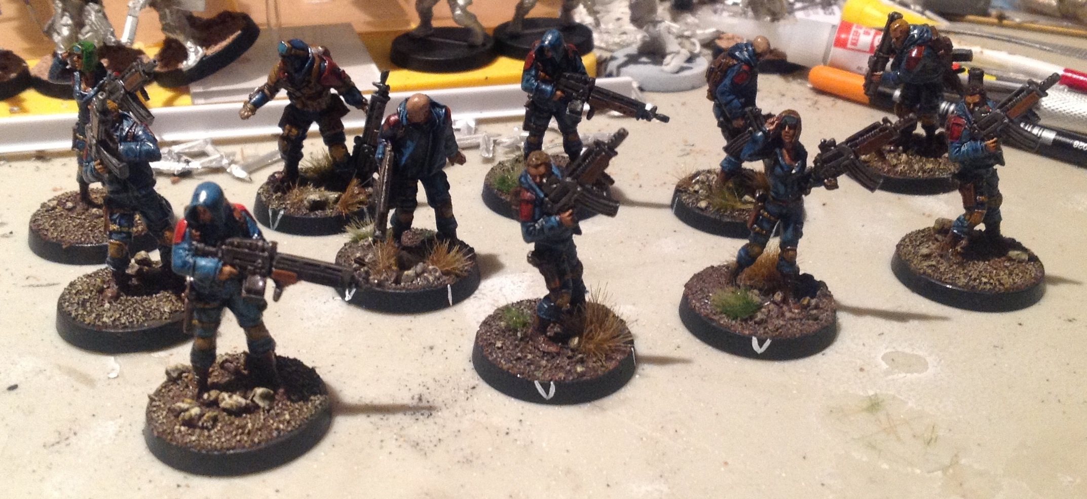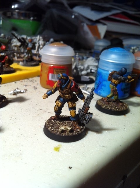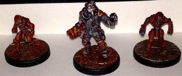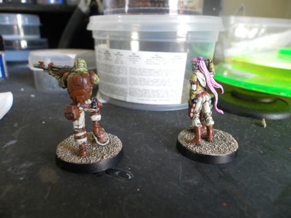Iggy and his stooges (model made prior to the art being released for the Iguana). That's a Mobile brigada HI with HMG and modified head. Also proxies as Iggy operator (until the actual model is released, when it will be replacing it.).