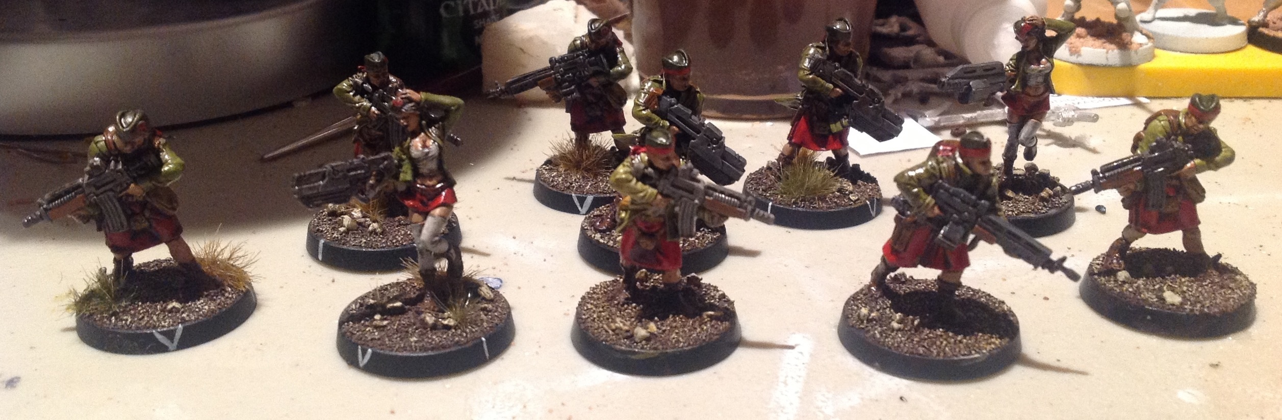 Paint and base the models I have for my Qapu Khalqi sectorial force. So far this is Nomads Alguaciles (3), a mobile brigada HI (HMG) and 4 Druze Militia. Still to come, the Haqq contingent and an "Iguana" TAG stand in.