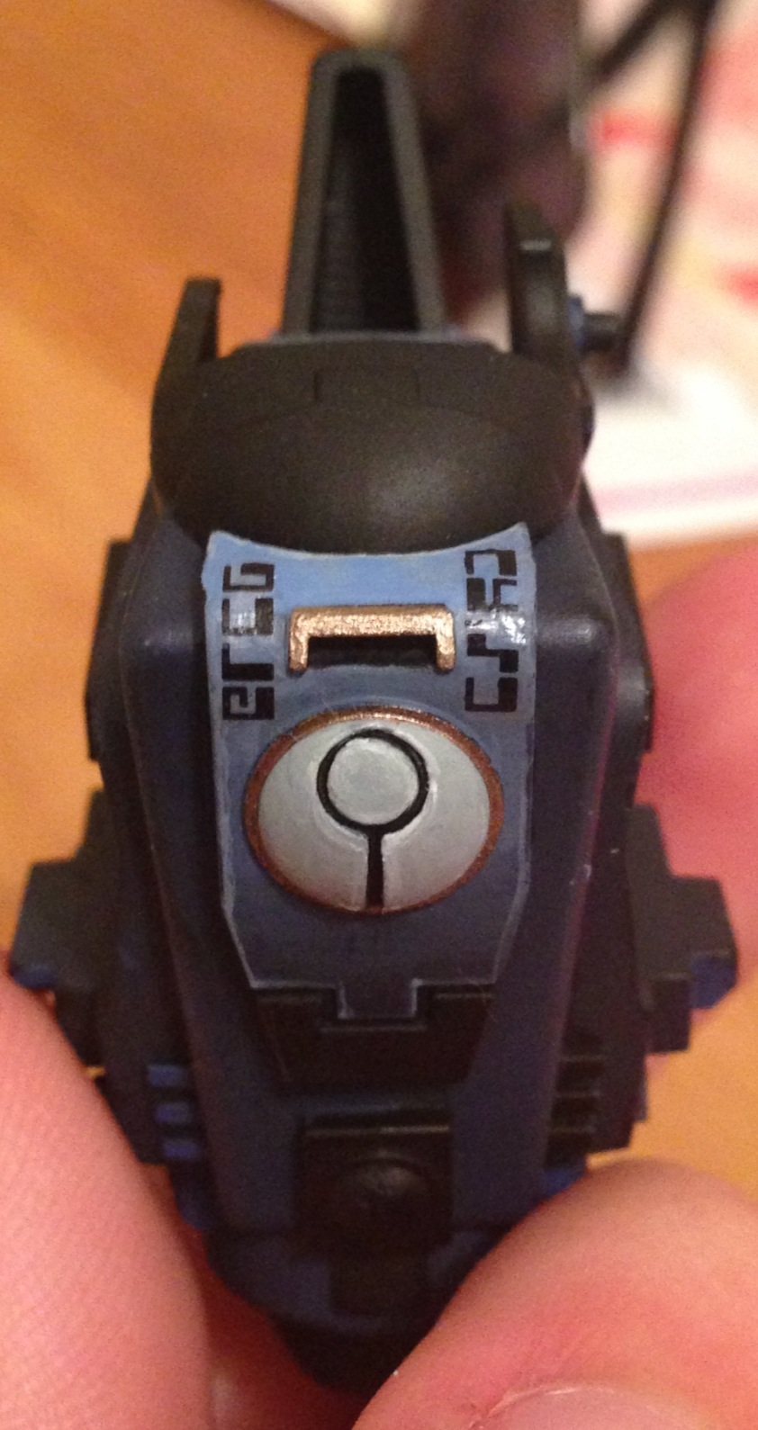 The only small thing I would suggest to you is that if you are planning on doing commission work for other people is to take a little more time on assembly, I noticed that one the shoulder joints it doesn't line up properly and there are some small mold lines and nubs from where it was clipped from the sprue . On the head there is a pin mark (that round circle, I believe that is a pin mark where the sprue is pushed out of the mold after casting.). I haven't used GW's liquid GS but some quick pudding would fix that up in no time and make it look all the better. Just remember paint does not hid mistakes it exposes flaws ( I learned that one the hard way also  ).