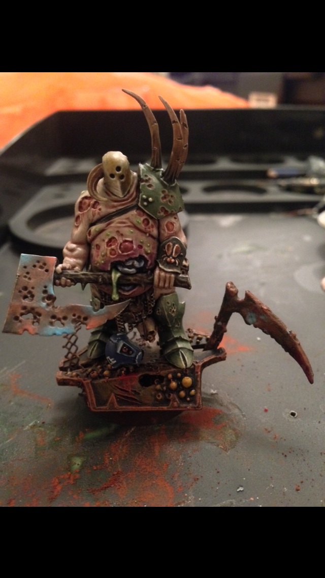 Hey guys, long time since an update I know - A levels are waaaay to time consuming, but I'm fitting in some more painting now I hope. Anyway, here's the start I made on Nurgle Lord No. 2.