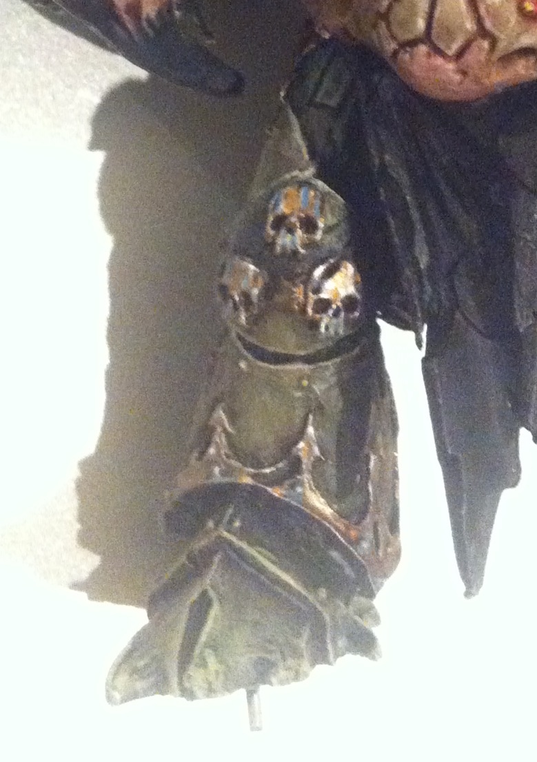 If it were bone, I wouldn't mind - but I was aiming for gold - I managed to get a little more contrast on the gold since that last pic, made it look more metallic I hope. Whilst I was darkening I went a darkened other areas like around the intestines, which I think the model needed.