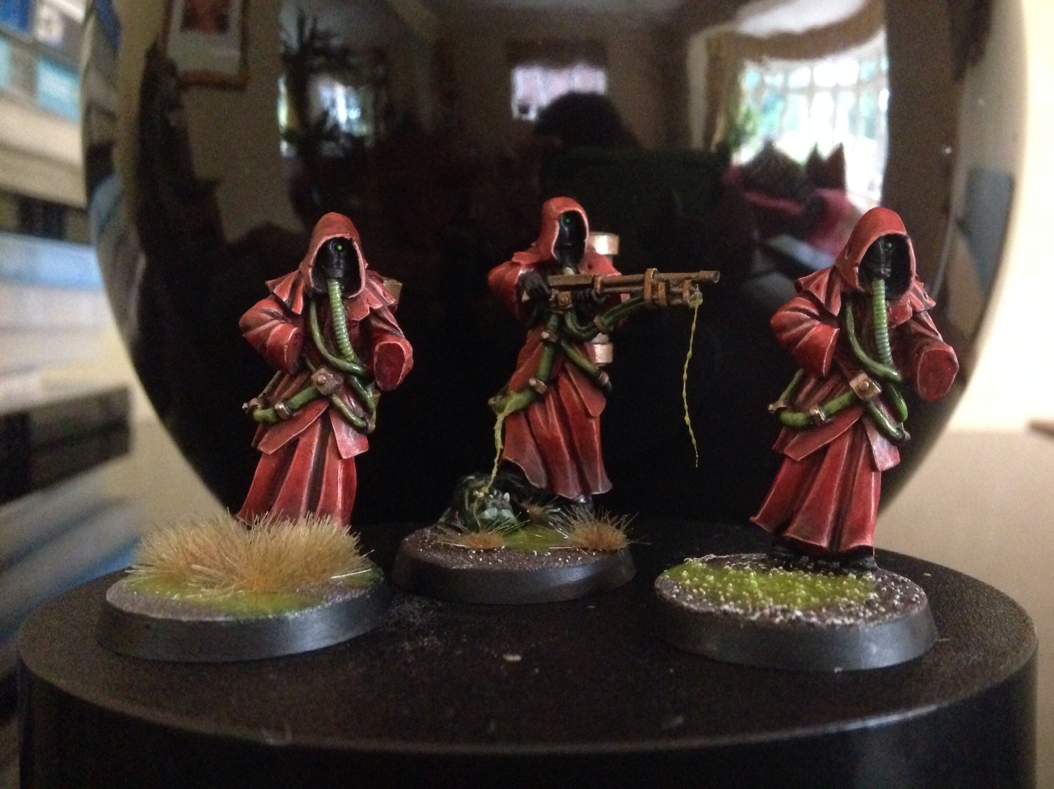 Nearly done on the Flamers, their feet are weird though, making them lean forward or to the side too much, so I corrected one by painting an Orc head he could be stepping on making him more level.