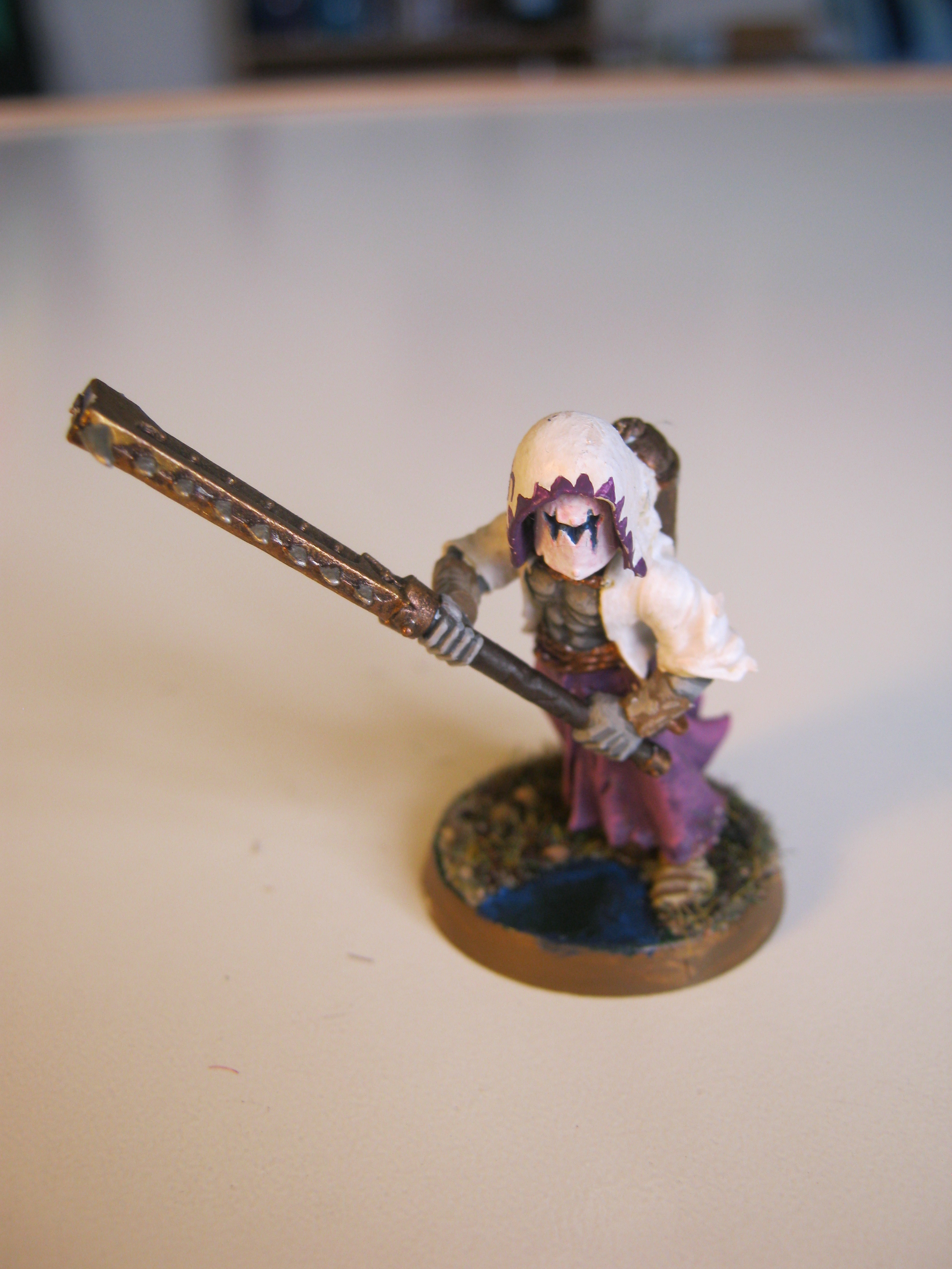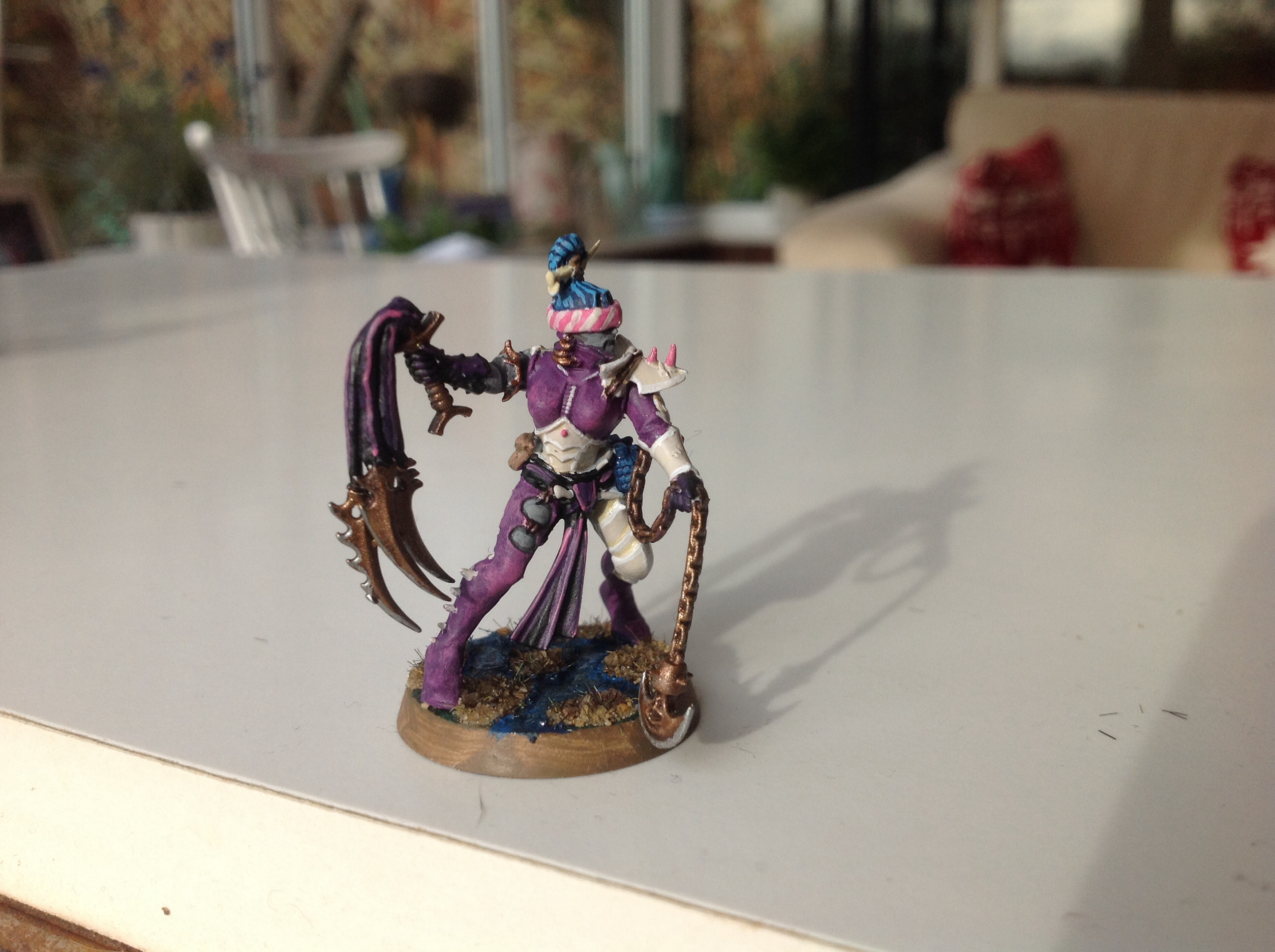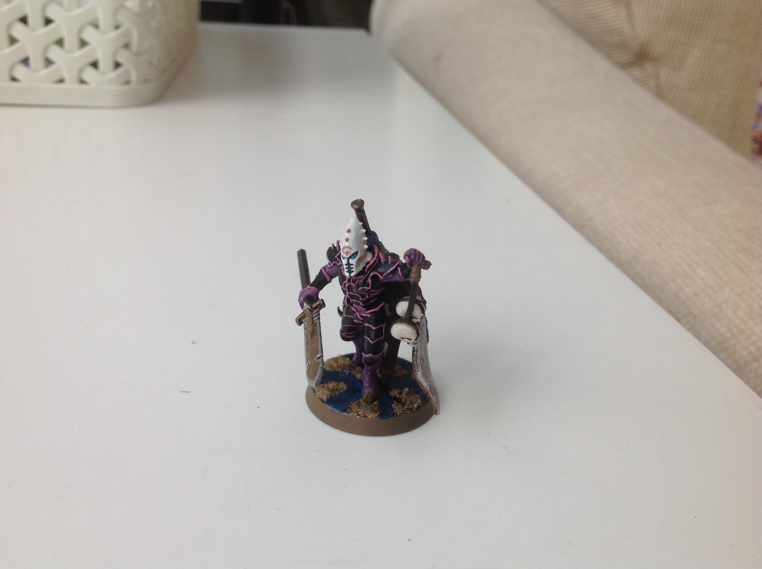 The chequered pattern was a bitch to paint!! Its bleached bone with pallid wych flesh highlight, over plain Xereus purple.