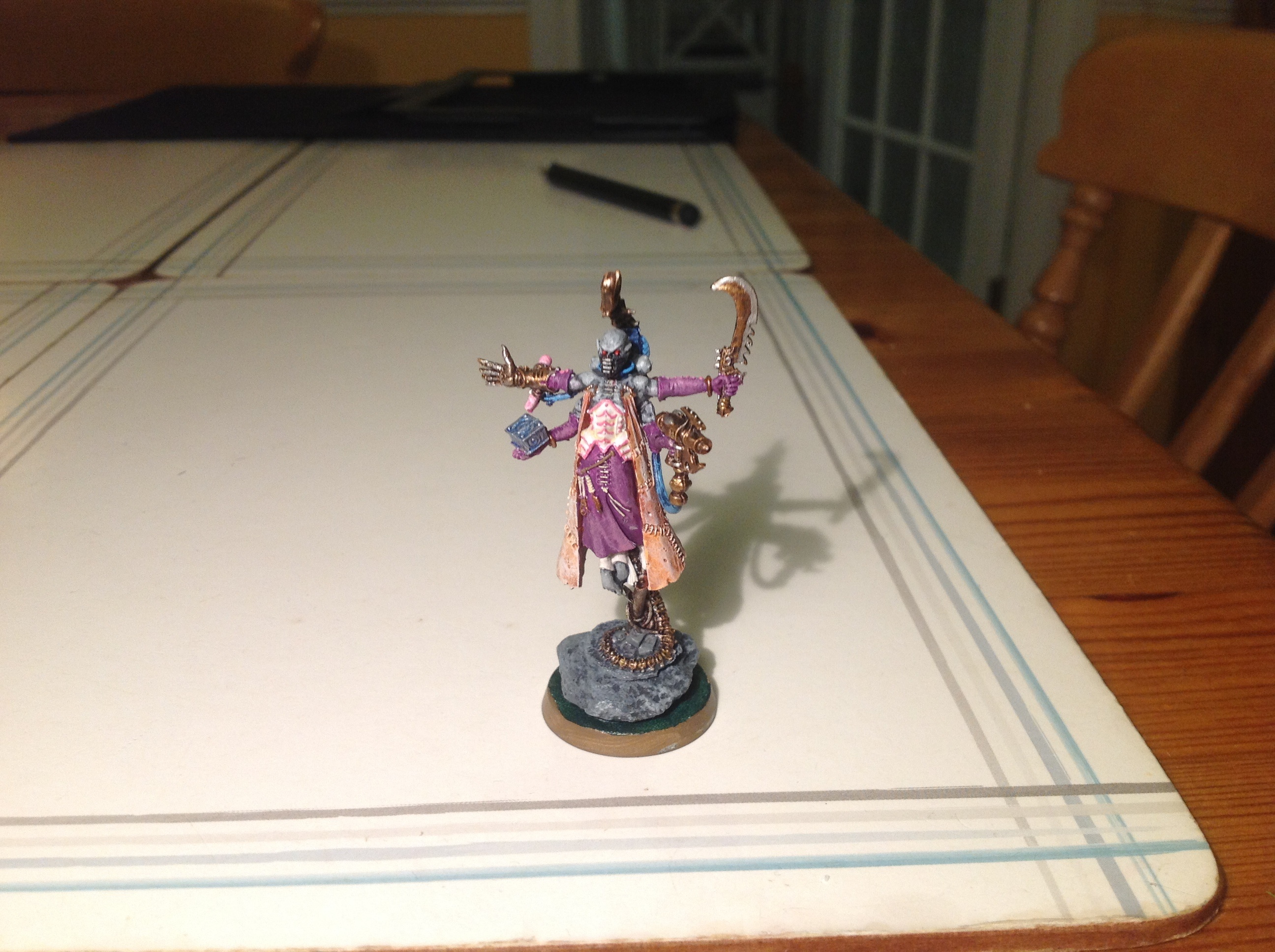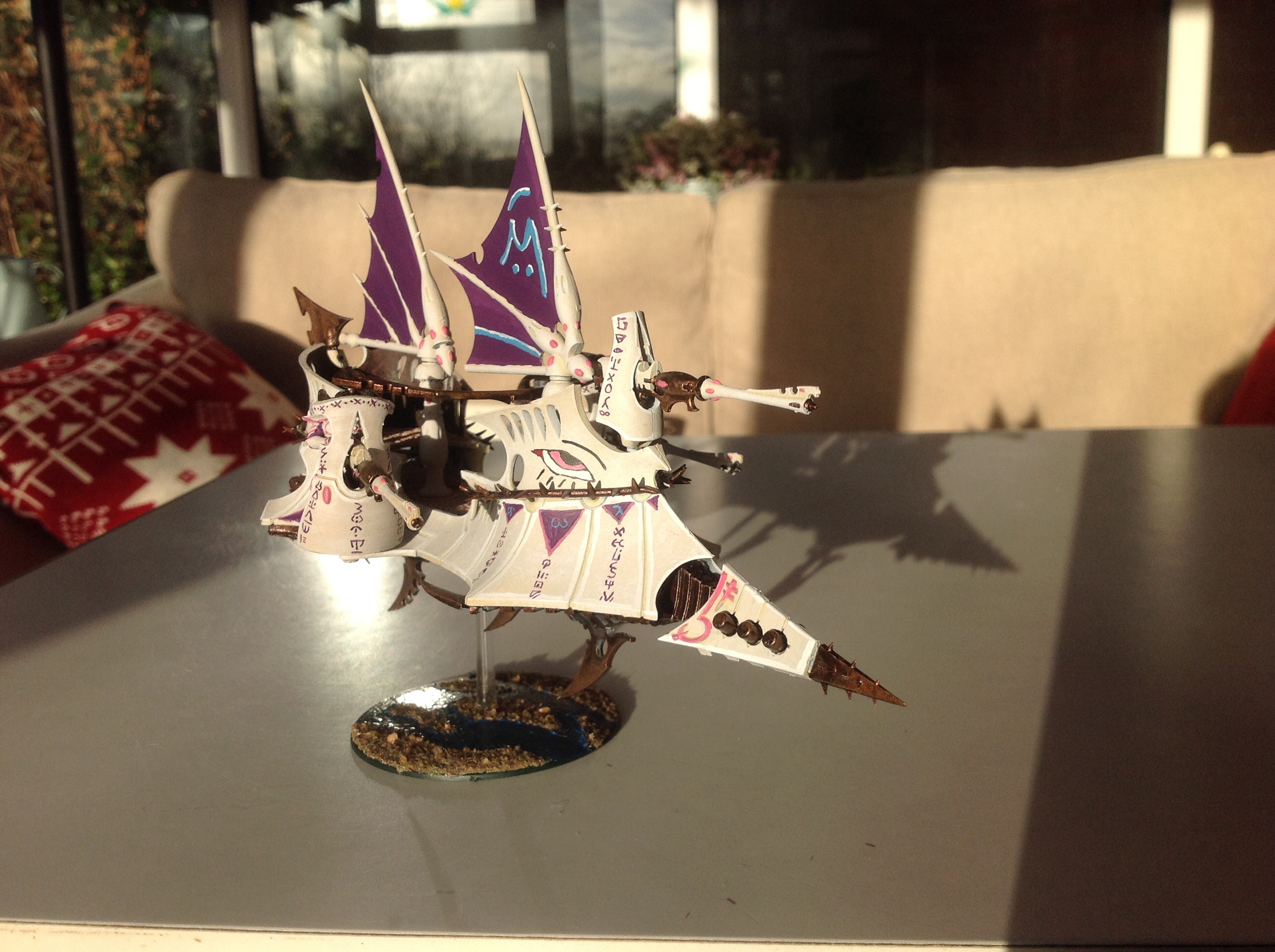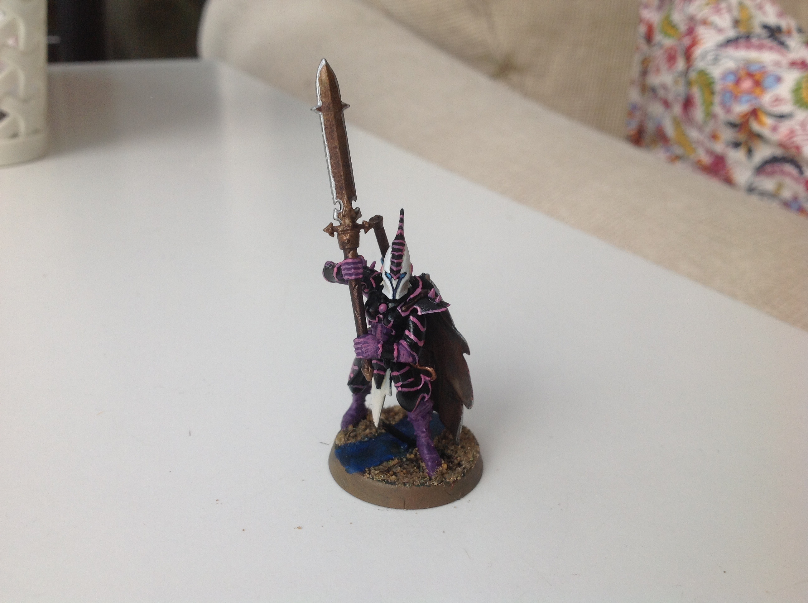 The chequered pattern was a bitch to paint!! Its bleached bone with pallid wych flesh highlight, over plain Xereus purple.