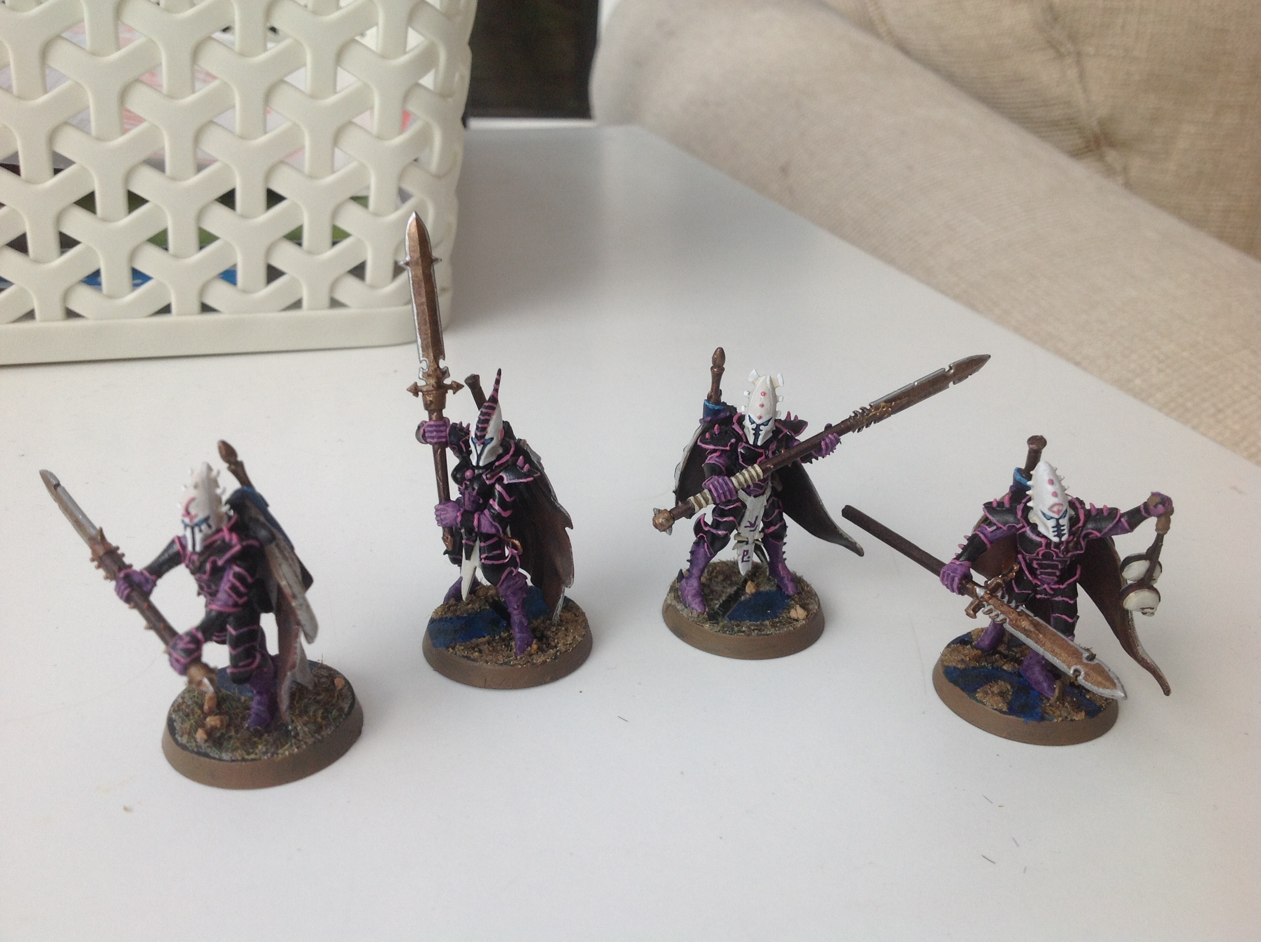 @GrimDork, Yeah I plan them to have essentially reversed colour schemes- black ceramic armour with purple highlights, bone white capes and possible bone'white helmets as well. Only the Incubi will be black armoured, to underscore their status as veterans. They will also match the Archoness, who I plan to be black-armoured with pink thorny floral pattern flowing over the armour plates- we'll see how this turns out! It may end up just as pink highlighting on black armour.