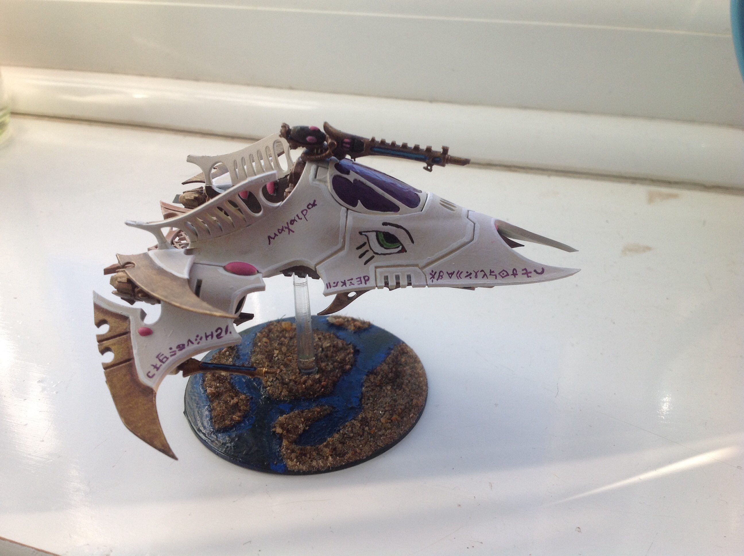 @j29reborn, Thanks and yeah, the clan marking is my own design. As DE are quite competitive and rivally, I was planning to have each squad have its own clan marking, as I imagine the eldar band together into small hedonistic groups of 5 to 10. The markings I plan to have swirling on the Raider are taken from Mycenaean Linear B tablets, a nod to my Ancient History degree