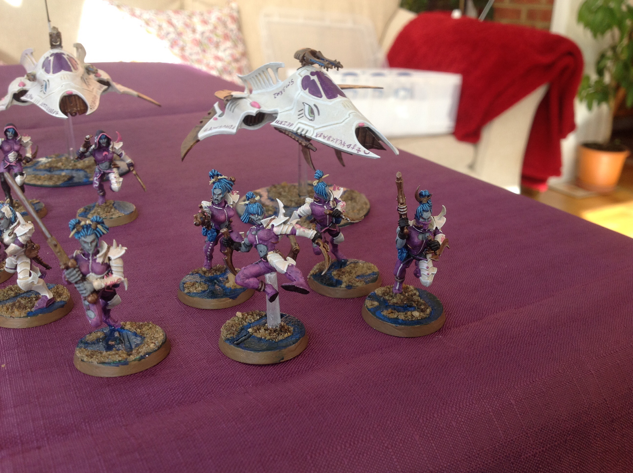 Not really sure on fluff yet, apart from them being not true DE; they are more like outcasts or corsairs, neutral Eldar thrown out of the Craftworldsthat haven't sunk to Commorragh's depths yet, so I can probably tie them to a planet, a base of operations. This neutrality may manifest itself as an Eldar allied detachment further down the line.