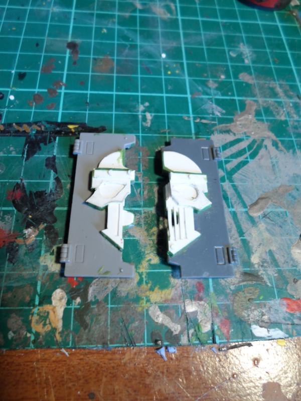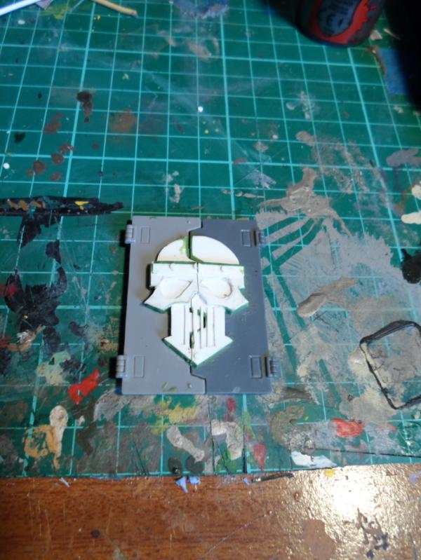The IW symbols are from the forgeworld doors, which i sanded off the door part with some wet 240 sand paper (keep it wet to avoid nasty resin dust from getting airborne).