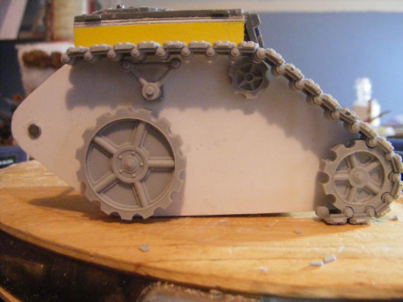 It's not as far along as I would like, as I have hobby ADD. I am currently making a weird land-tank surprise for someone, working on a gunship that is the in-between of a Stormraven and Thunderhawk. (Going nuts on deciding if I am going to pull an STC and fill the inside with card too like he is doing with his Stormbird,) and I have also renovated my TFC build.