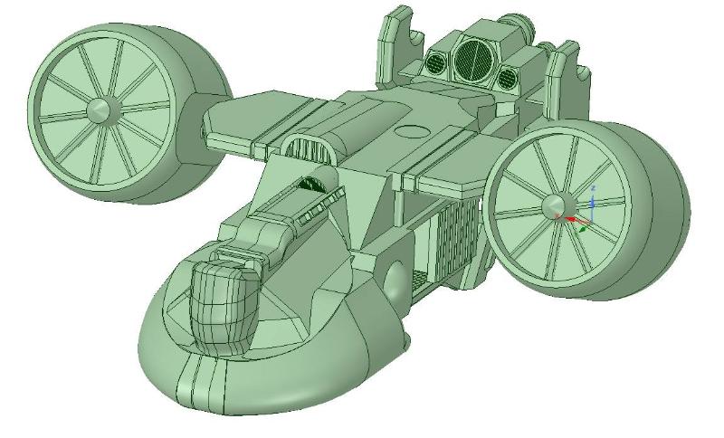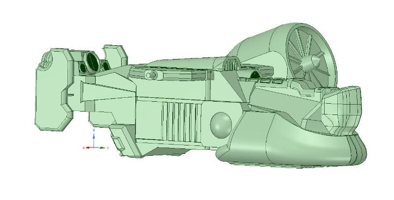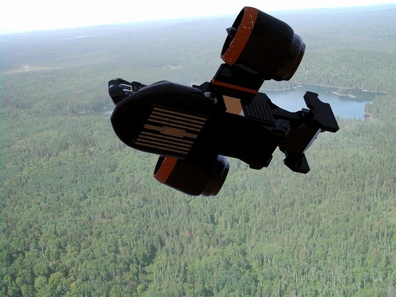 In the meantime, after clocking about 85 hours I made a gunship and then rendered it. I'll be printing it tomorrow. It's 20 inches long, and the turbines are five inches across alone.