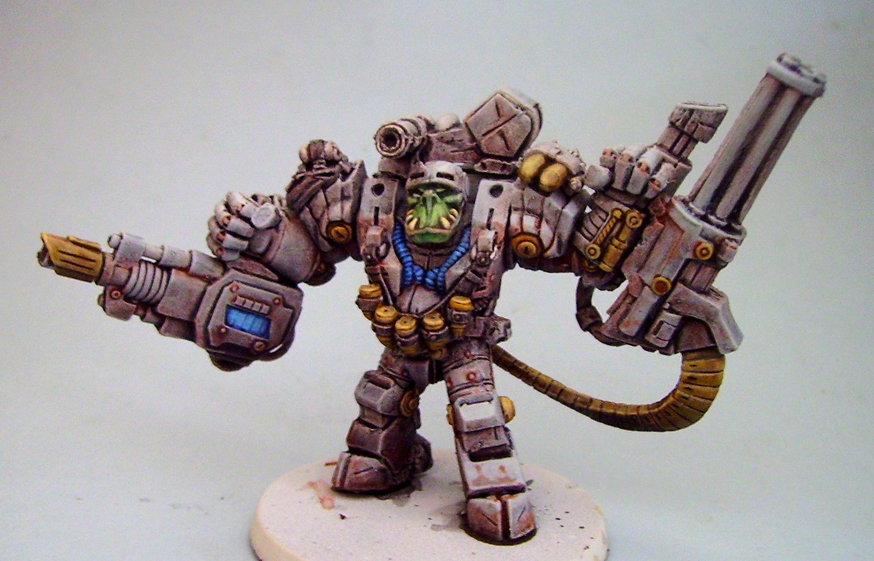 Thanks nerdster. I'm especially happy with the skin. The recipe is almost all vallejo. I started with my usual P3 armour wash over white primer which gives a graded gray. Over this I wet blended a fairly thick layer of 'old rose' a pale reddish pink. Then I thickly applied a flesh-tone wash, and before this dried I added basic flesh tone, and sorta mixed it in with a stippling motion. Finally highlights in pure white with flesh tone mixed, bloodstains in flesh-tone wash mixed with red wash and a very watered down blue wash in certain areas I thought might be more ripe.