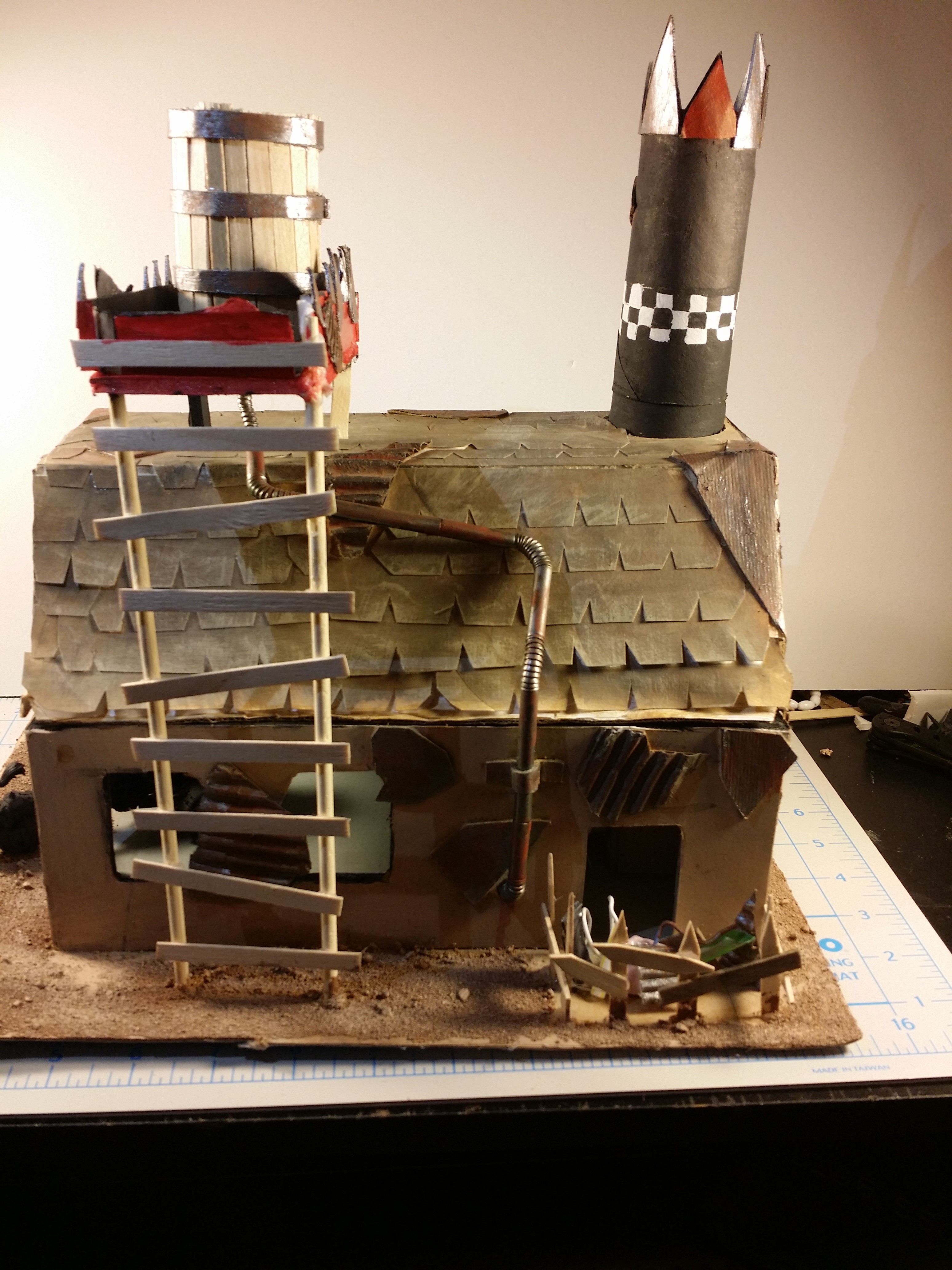 As promised here are some more WIP. Barrel on top will be filled with water and have piping down to the shop. Interior is still in progress. I have a furnace in there for now, still gotta fill it with tools, scrap metal, and a buggy being built. Still along way to go but it is coming along. Roof is still magnetized for removal.