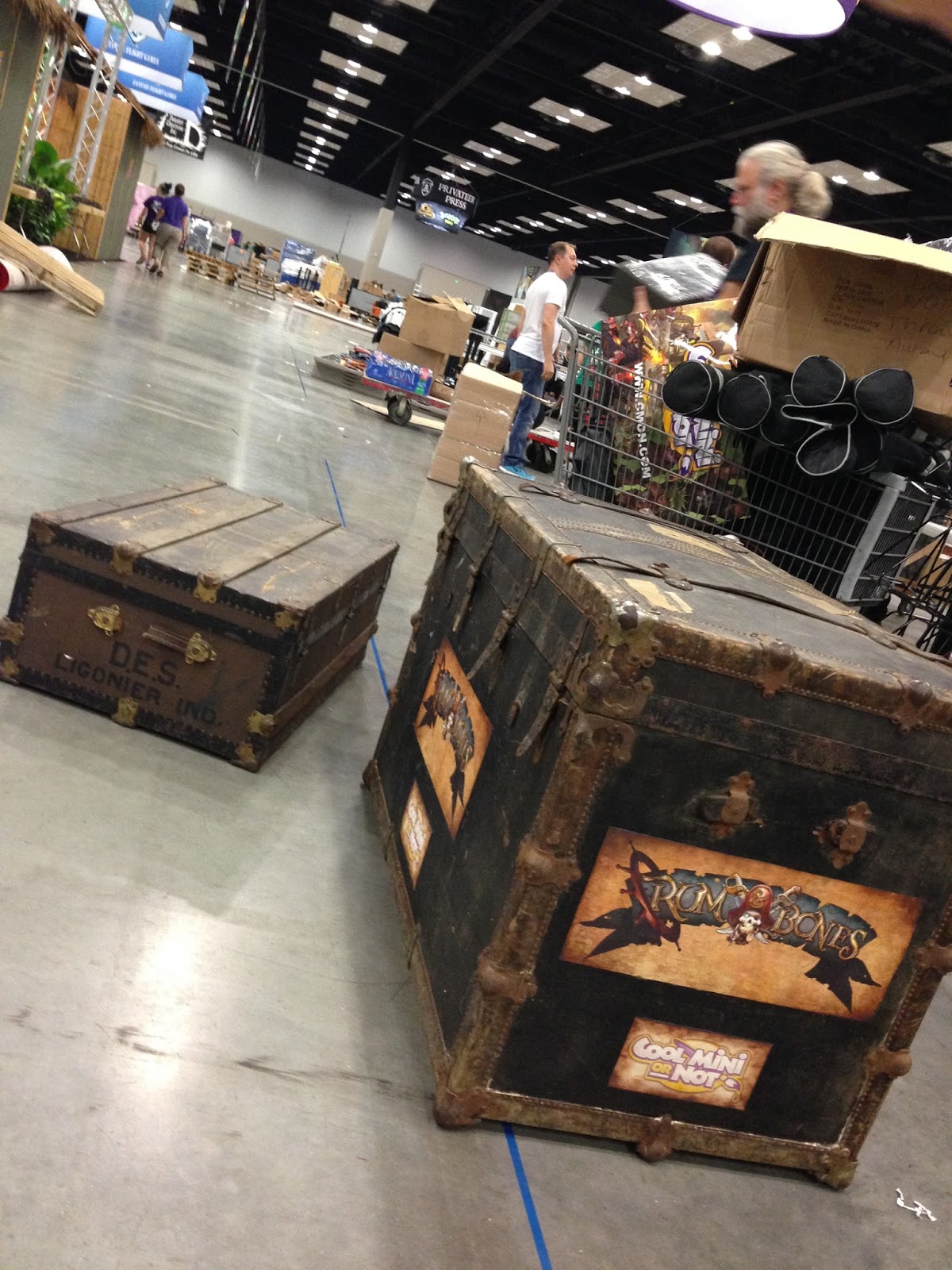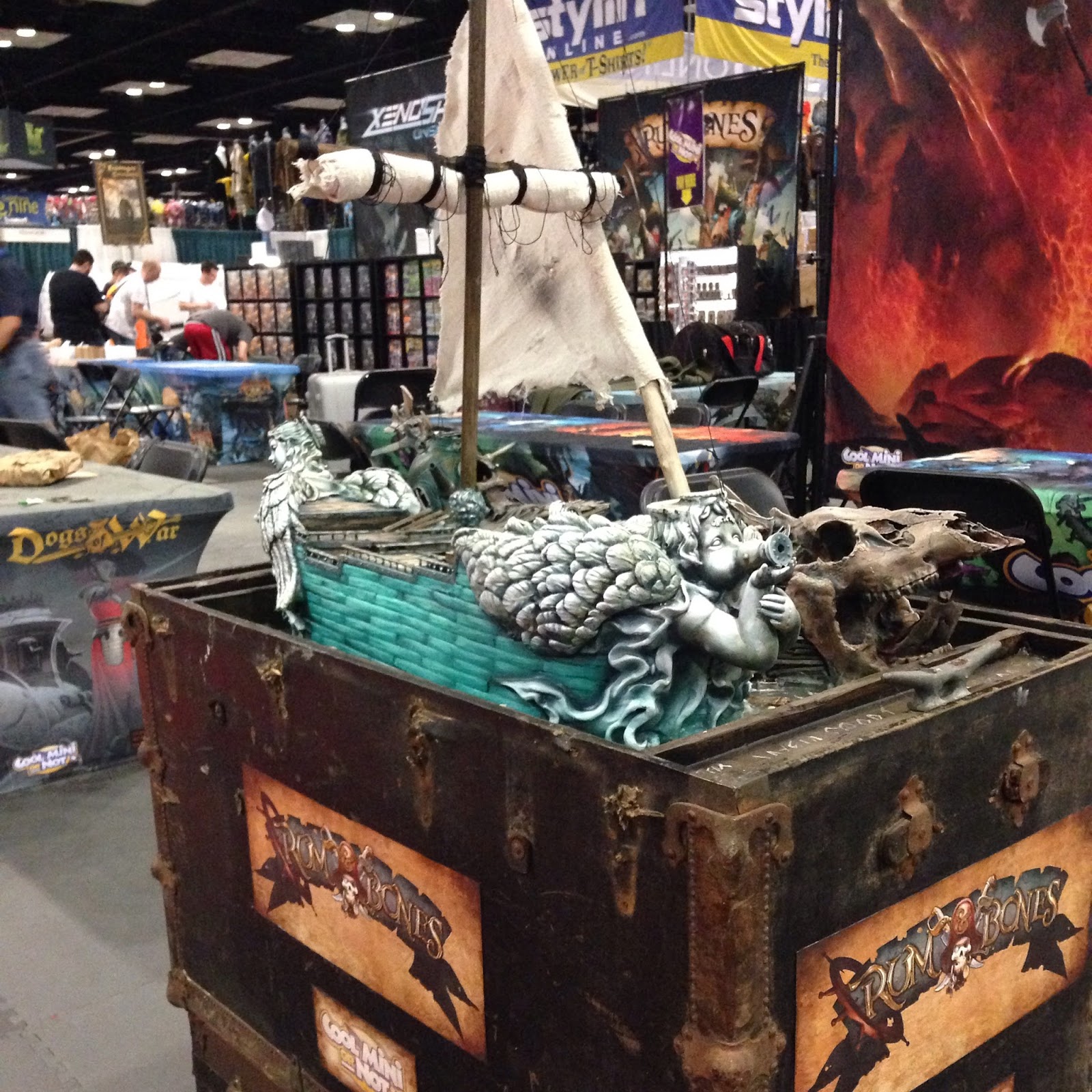 Hot out of the galley, here is the official display/demo table for Rum and Bones, a board game of ship to ship combat by CoolMiniorNot for Gencon 2015 in Indianapolis.