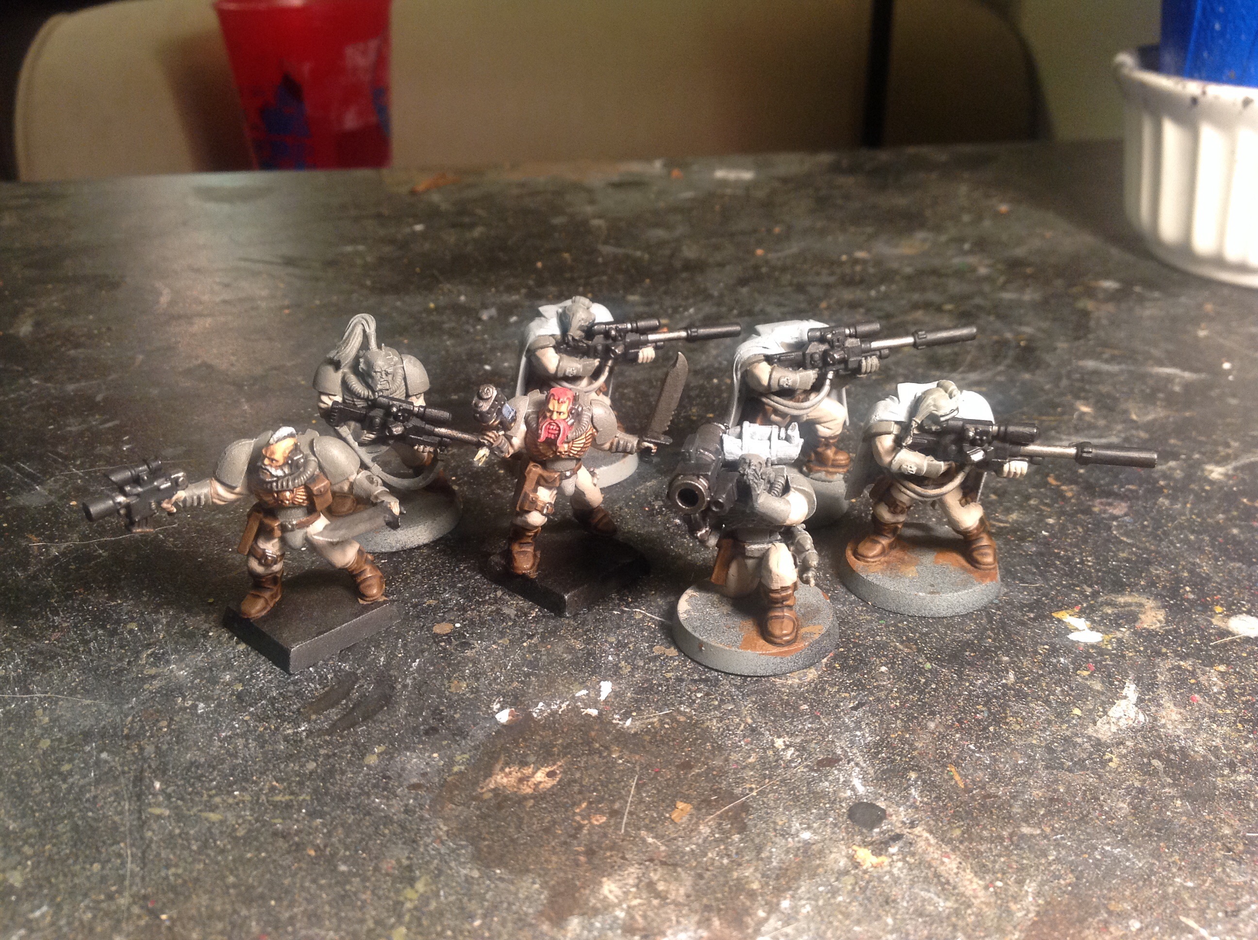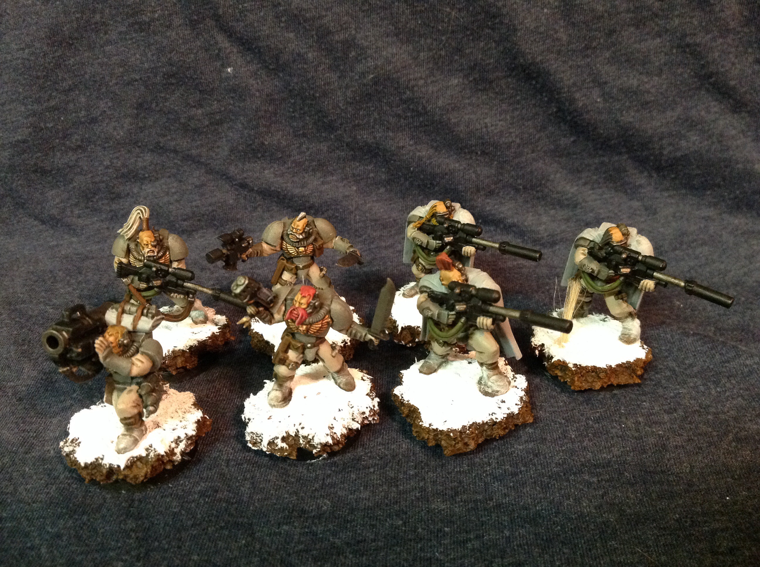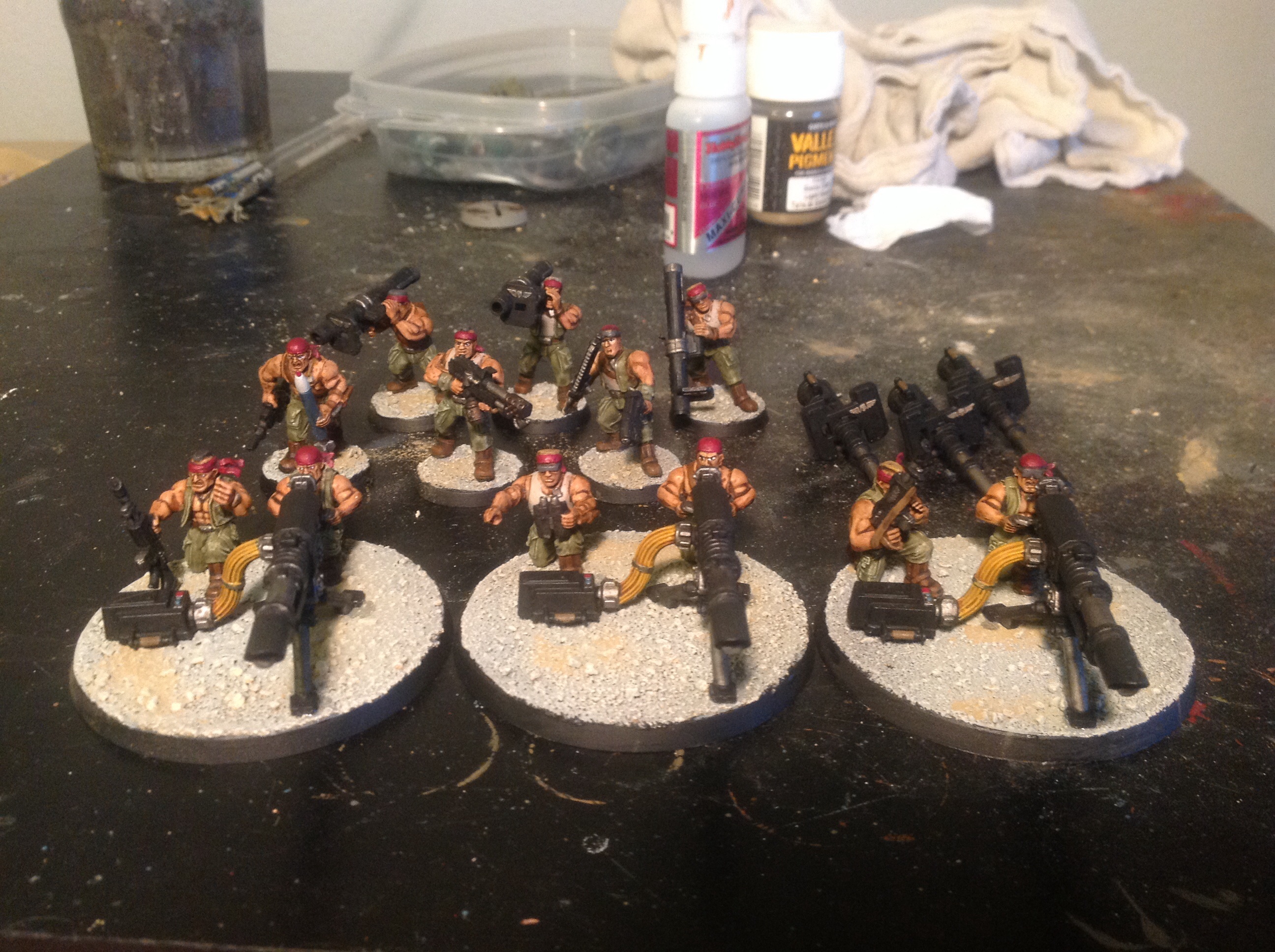 Ok, 3rd vet squad. I think I'll cool it on IG infantry a while and finish up my vehicles. Also a sentinel WIP. Love the sentinel models, I have 3.