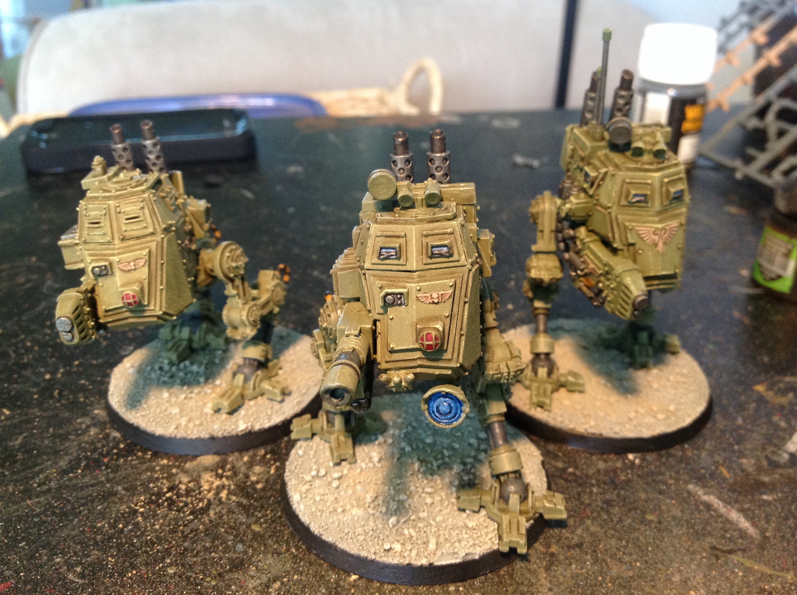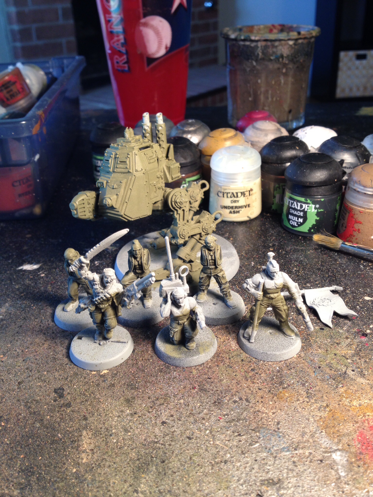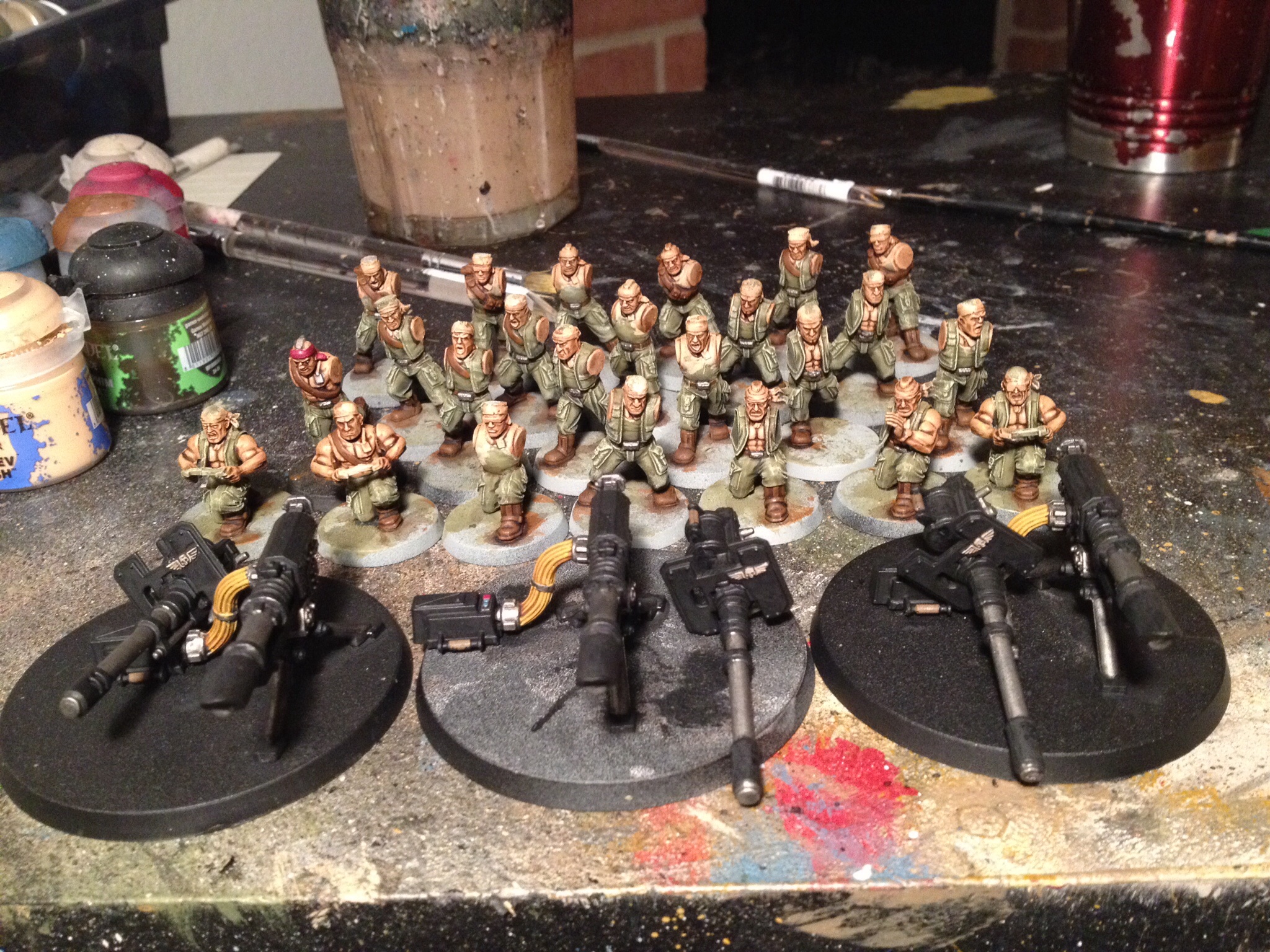 Ok, 3rd vet squad. I think I'll cool it on IG infantry a while and finish up my vehicles. Also a sentinel WIP. Love the sentinel models, I have 3.