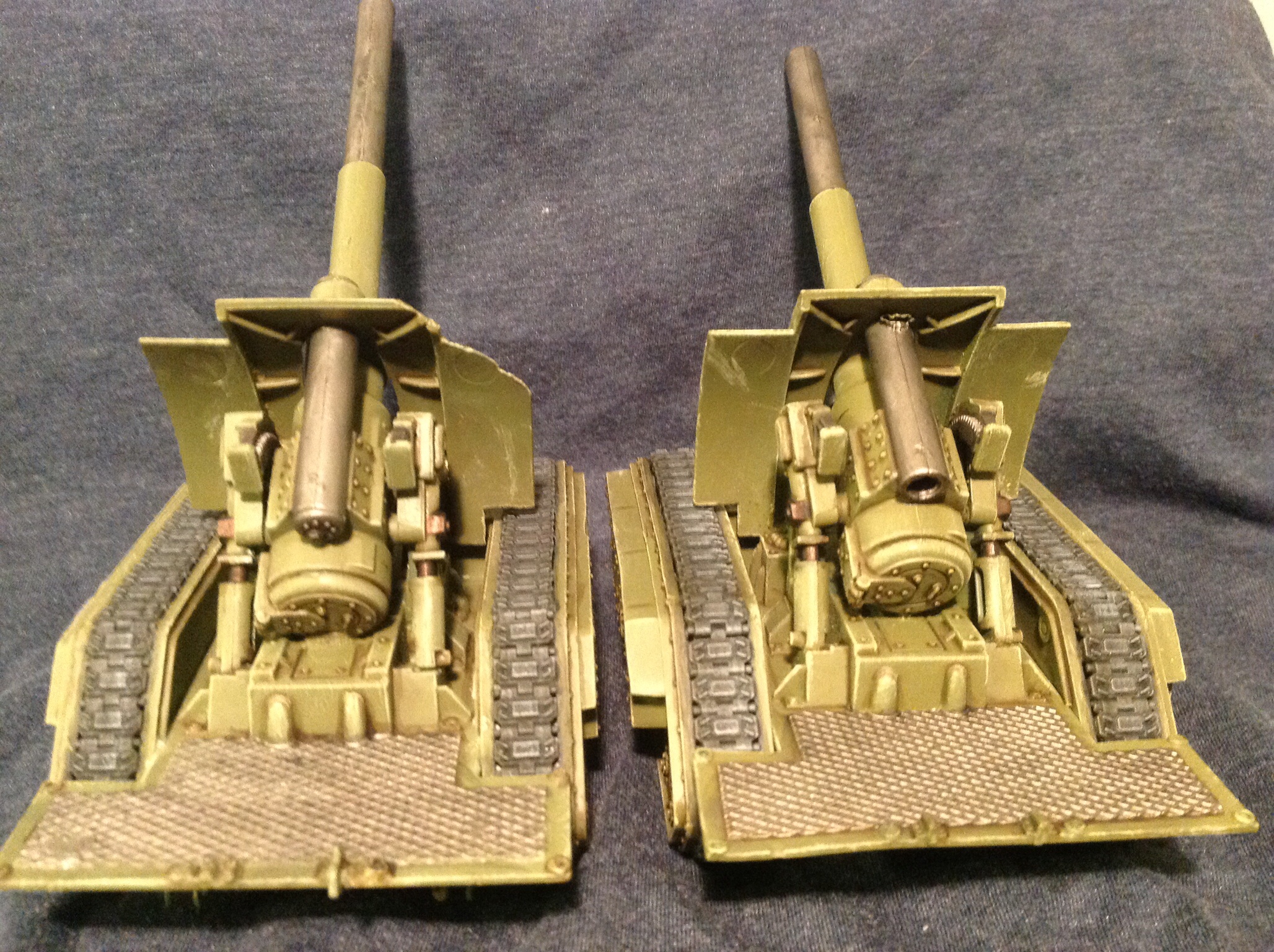 Thanks panda. I'm going for an olive drab, easy on the drab. I was planning on weathering these tanks, but maybe not. This is the first time I put wash in the recesses of a tank. I think it looks pretty good as is. Any thoughts anyone? Anyway, first 2 Russ's are done. Except the weapons of course. Hopefully by Sunday.