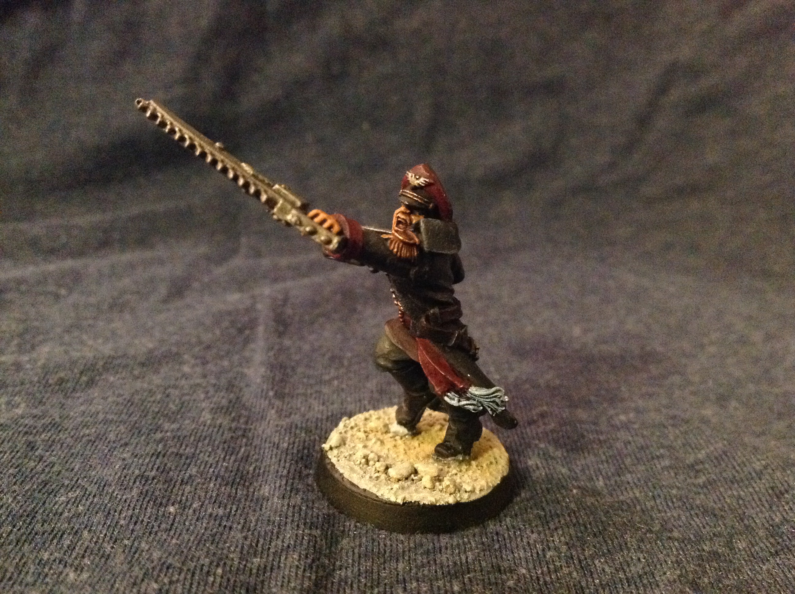 I agree with Nev, you want something dark and that contrasts with the Catachans. It does look good, but not enough contrast with the IG.
