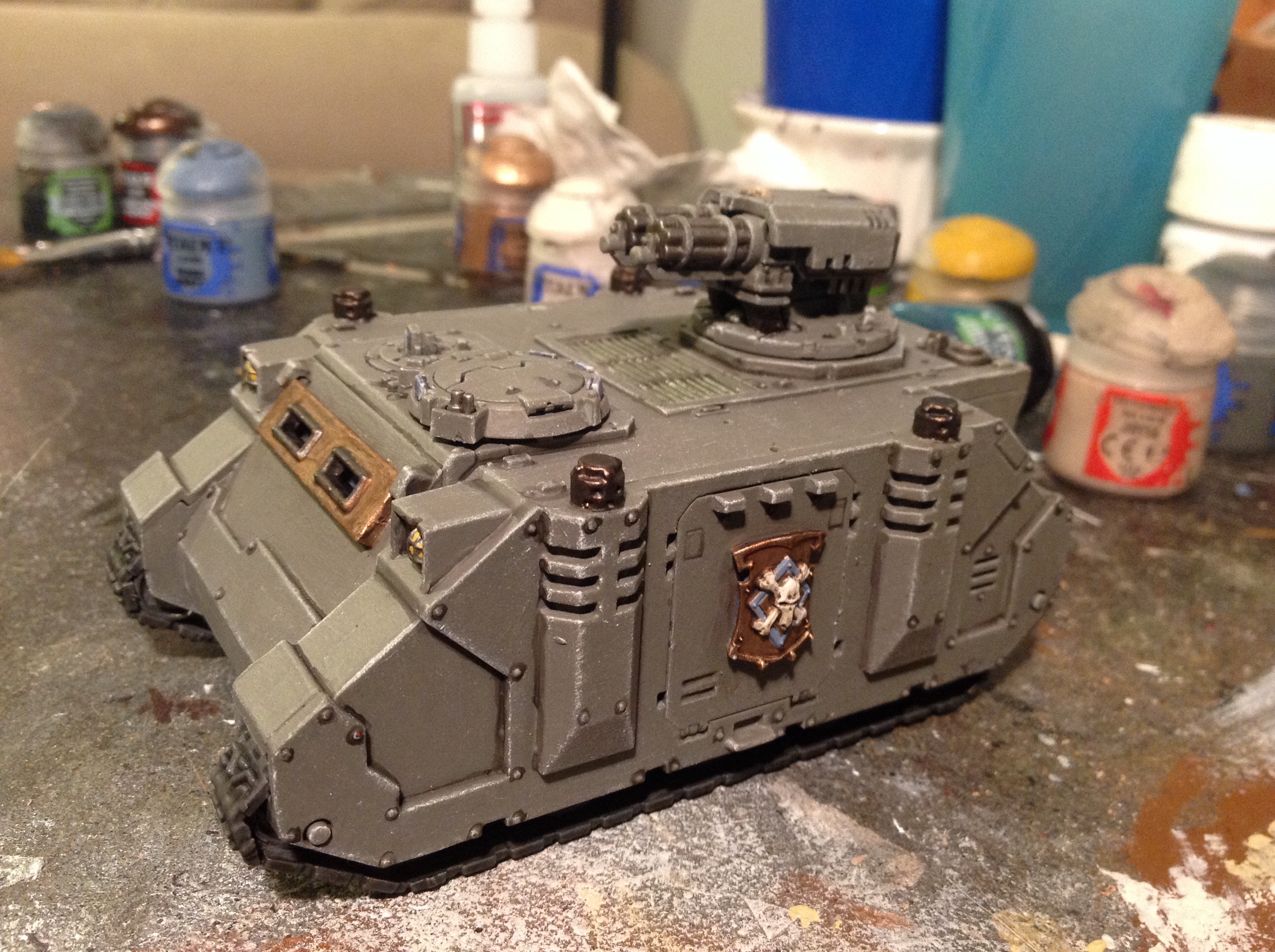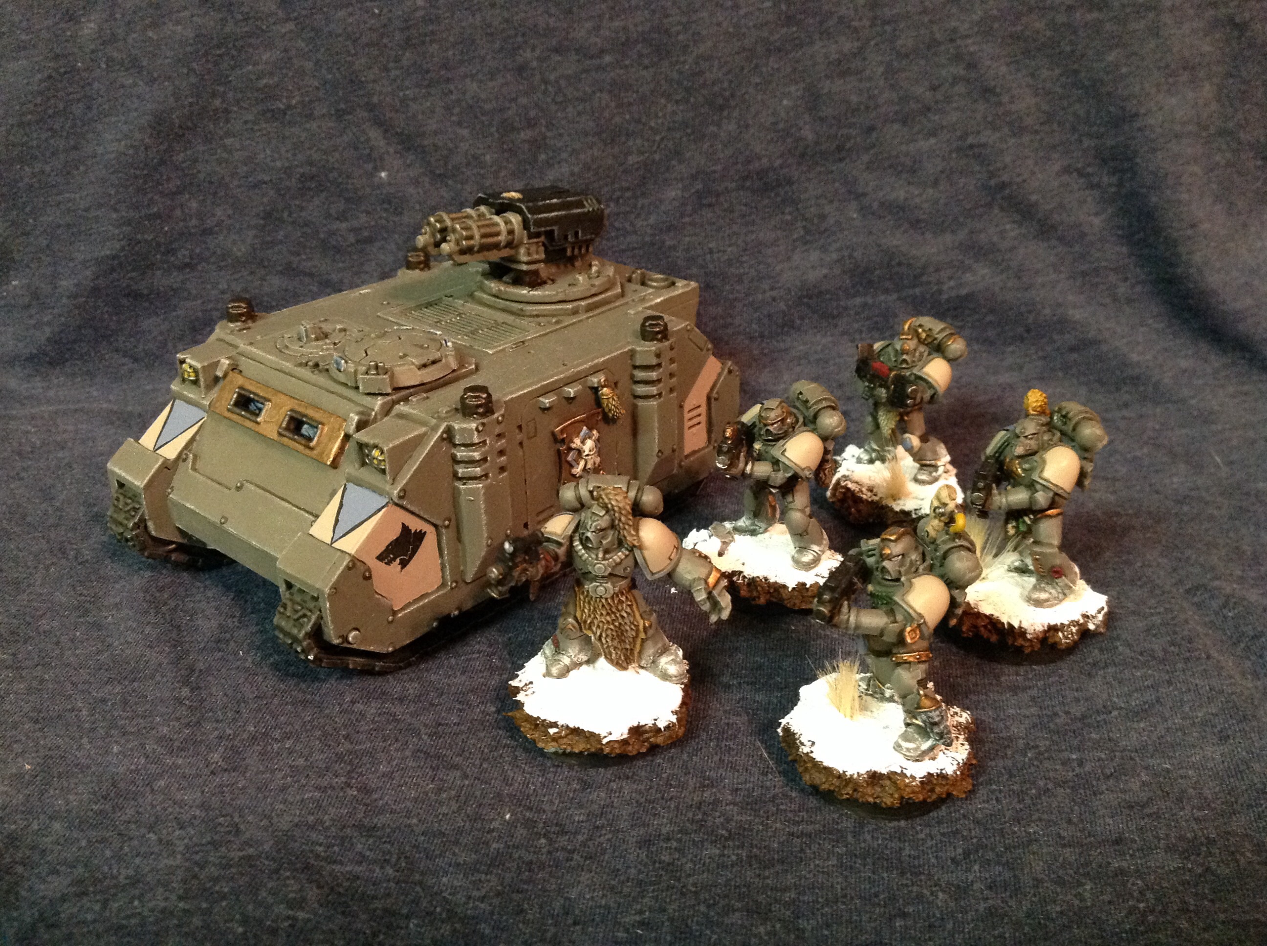 Thanks gents. I agree with you on the sponson placement. I usually place them up front reasoning you don't want to shoot your own guys when they come out the side door. Then again, these guys are Space Wolves. They go out the front. Going out the sides are for wimps and Ultramarines.