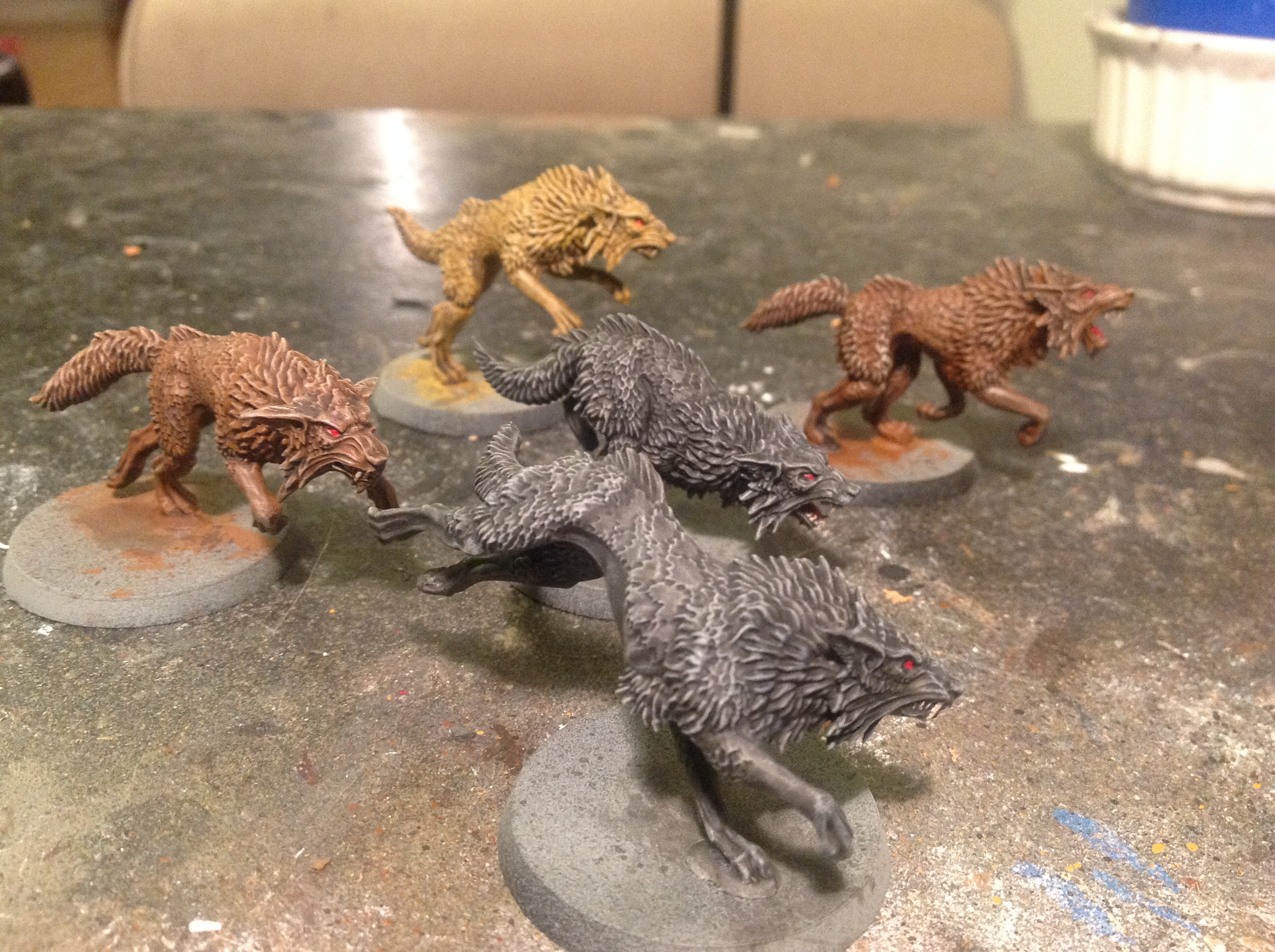 Grim looking bunch of wolves you have there. Well done.  You seem to be plugging away at these guys at a quick pace. Finding them easier to paint them some of the other armies?