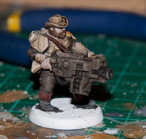 Love the catachan head like that, as for the other guy I would swap bolter for shuriken p but leave the strap as that's more aesthetically imperial to my mind, which would help it gel (mebbe). Also, good to have you back!