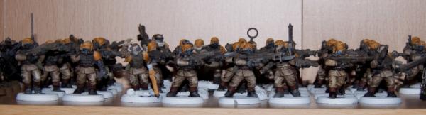 Last night I finished another batch of guys. 10 more lasguns, 3 sergeants, 1 grenade launcher, 1 melta, 2 flamers... so the force chart is slowly turning from yellow to green.