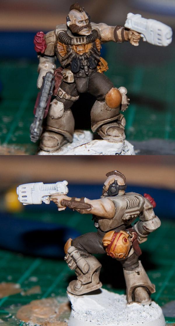I also found a use for the heavy bolter guy I started a year or so back. I'm not sure why I never thought of making him Harker before... duh! I can't remember where the head came from right this second, but when I remember I'll come back and update the post as it's really nicely done. Again, this model is very much a WIP as I'm aiming to spend more time on the characters.