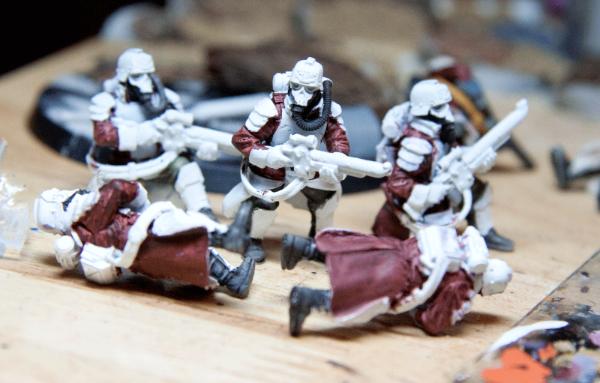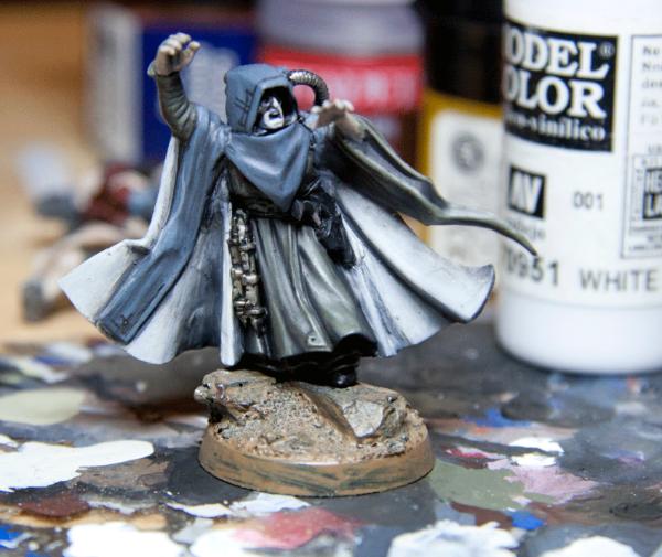 I've no idea how the cultists are going to look at the moment. I'm not sure trying to get them to look crisp white will look right. They may be done up in cream colours with a blue/dark turqouise contrast colour (a bit like medical scrubs)... I think some photoshop is needed to work that one out. Alternatively they could be a complete rag-tag bunch of misfits that have no common colour... they certainly aren't wearing any uniforms.