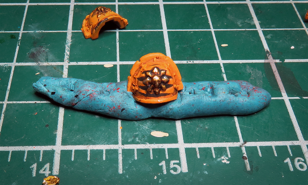 Im really enjoying this. I have never realized how easy it is to paint a marine Thats one colour. Still have alot to do. I have to free hand the shoulder, give it a wash and battle damage.